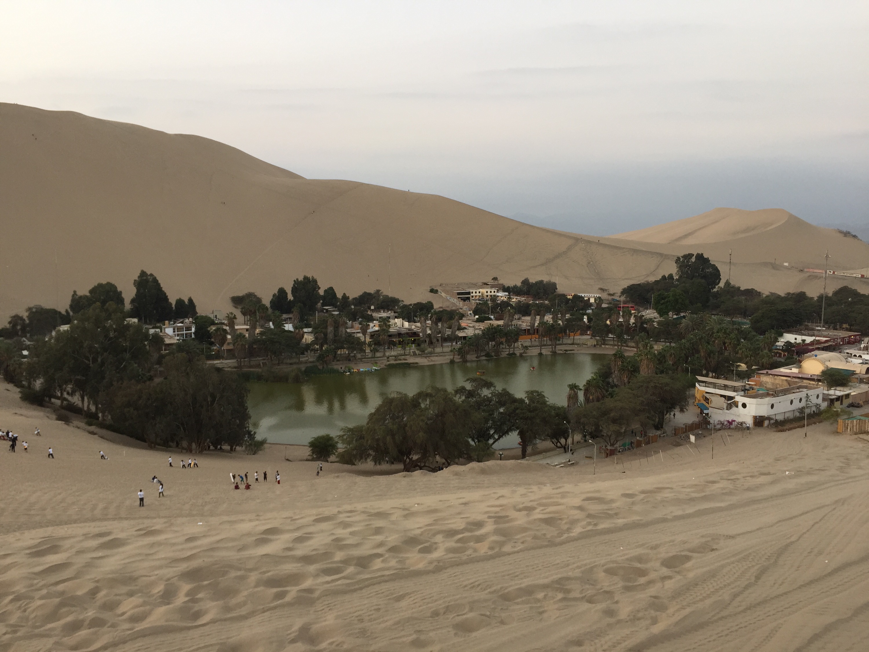 Huacachina, also known as The Oasis, is located about 20 minutes from the bustling, crowded city of Ica, Peru. My expectation of being shuttled to this far off desert hideaway was shattered when we simply drove around a sand dune. There it was. Still a beautiful site, but not quite what I expected.