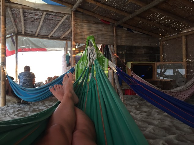 I had booked a hostel on the beach, Misfits, that consisted of individual bungalows with 6 beds each. The water throughout the property was unfiltered salt water and because the bungalows were on the beach, there was sand everywhere and in everything. I knew what to expect when I booked it. It had sounded a bit like beach camping with a bed, exactly the kind of grungy traveling I thrive on. Checking in to my room, I tried to neatly stack everything in a corner in an attempt to keep the sand out (to no avail). Within minutes, I was covered. It was impossible. Nevertheless, the bungalows were a great value considering we had our own private beach with hammocks and fresh croissants each morning.