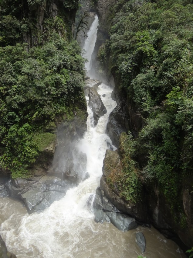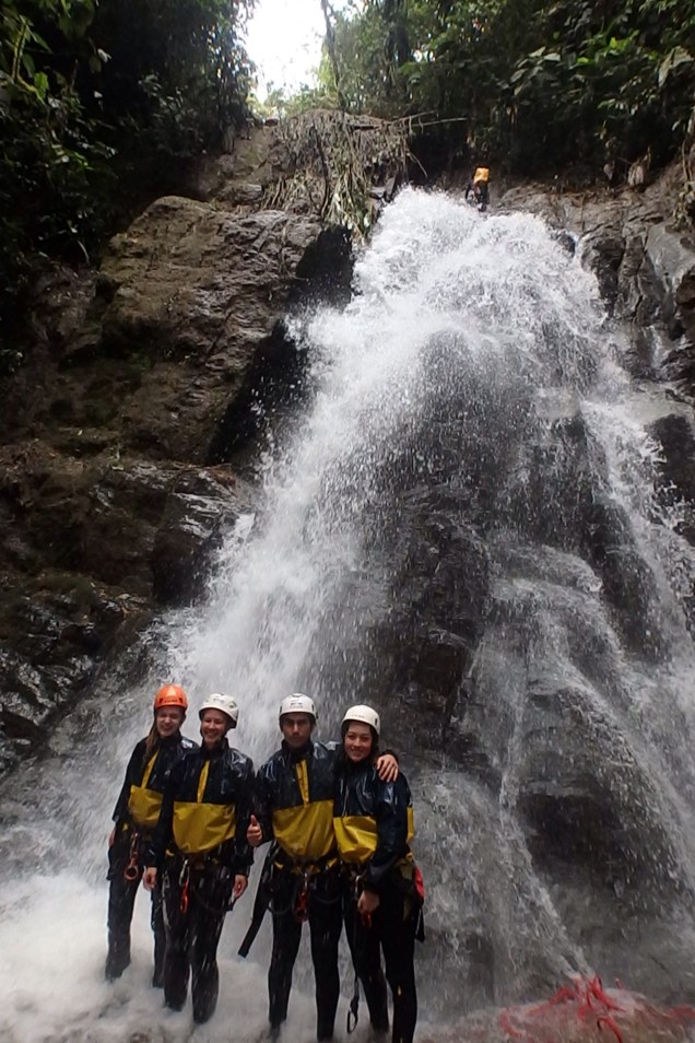 To go canyoning, I wasn’t scared, not even a little bit, but perhaps therein lies the lesson.  I approached this with complete confidence as if I had been rappelling hundreds of times.  I might have been better served with a healthy dose of reserve because canyoning is not at all what I expected.  I thought I am fit and strong enough and this should be easy if I follow instructions  and pay attention.  Have you ever tried to defy gravity, backwards, in an awkward half sitting/half reclining position, using a slippery surface as your guide, while buckets of a neverending deluge of potentially dirty water (let’s be honest….this is Ecuador) smack you in the face?  Well, try it.  Don’t get me wrong, it was really fun and ridiculous, but it was not as easy as it looks and the power of water to bat you about like a fly is simply awe-inspiring.