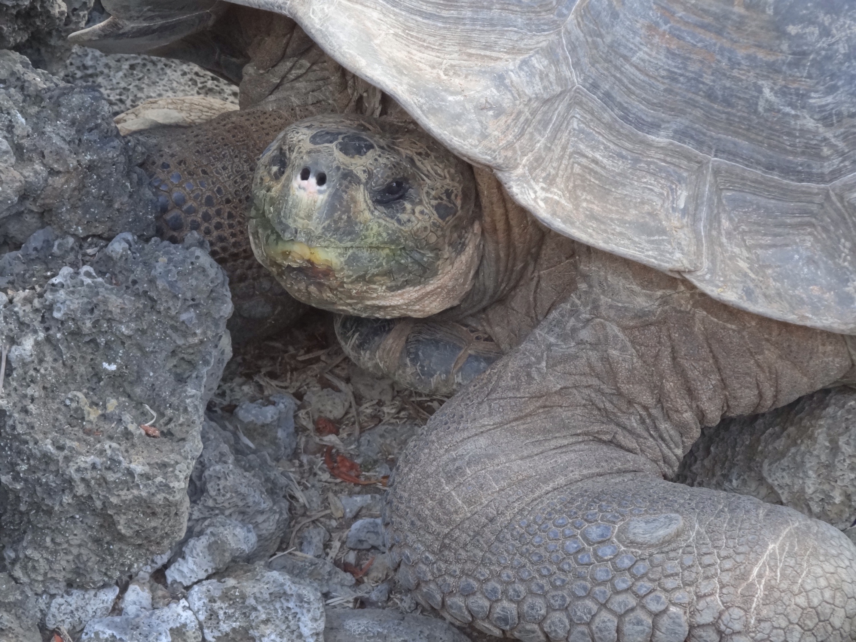 Our itinerary included the Charles Darwin Research Station on Isla Santa Cruz, the only place to reliably witness the Giant Tortoises. Tintoreras Channel (where you are supposed to see sharks, but again, unfortunately, we saw none), a muddy hike to the crater rim of Sierra Negra when the mist parted at the perfect moment to unleash an unparalleled view to the crater floor, Elizabeth Bay for a zodiac ride among untouched mangroves, Urbina Bay where we snorkeled with sea turtles and hiked on the beach to spot the intimidating land iguanas, and Punta Vicente Roca where we did deep water snorkeling with sea turtles, penguins, and marine iguanas (all at the same time!), all on Isabela Island.