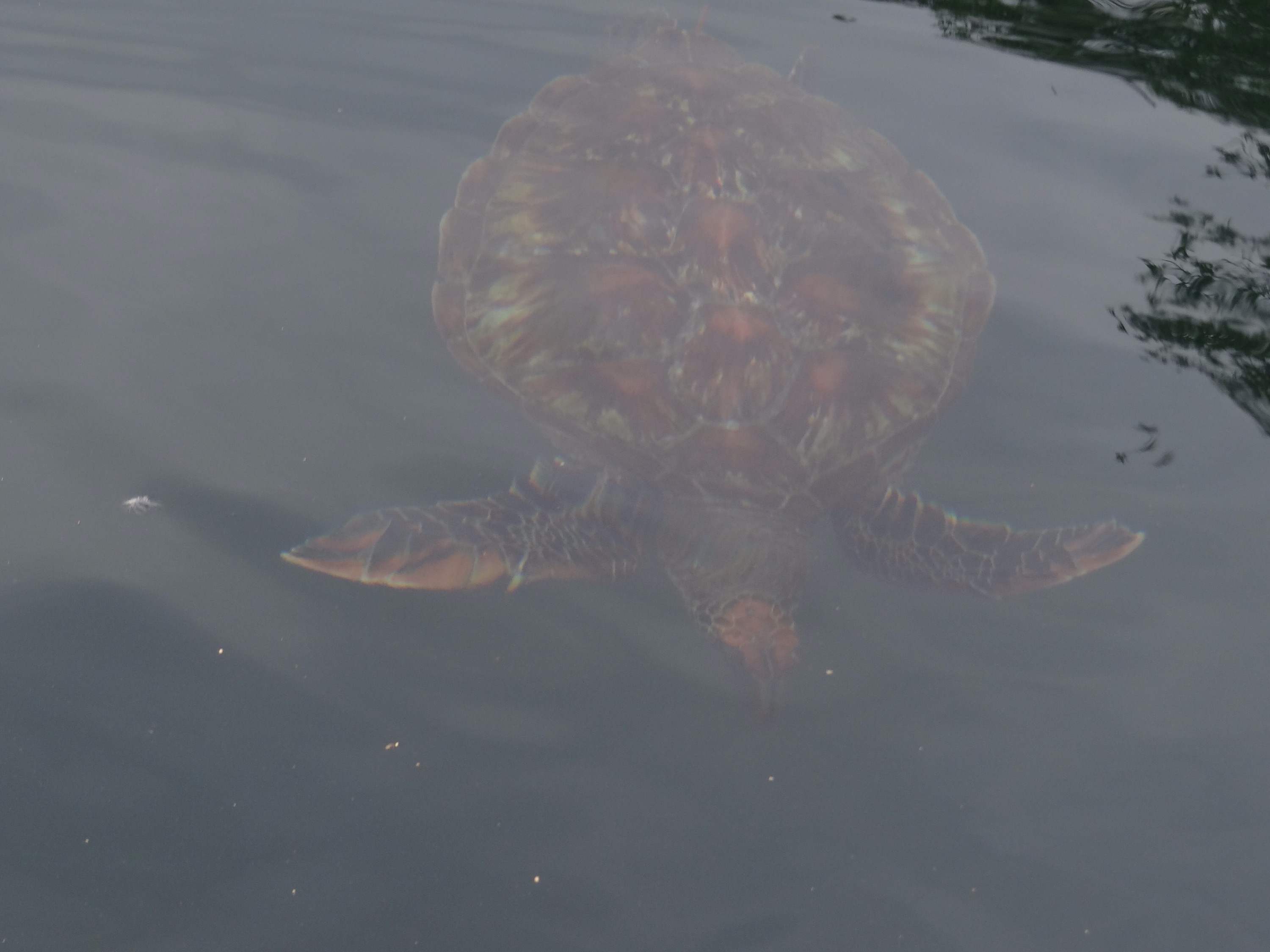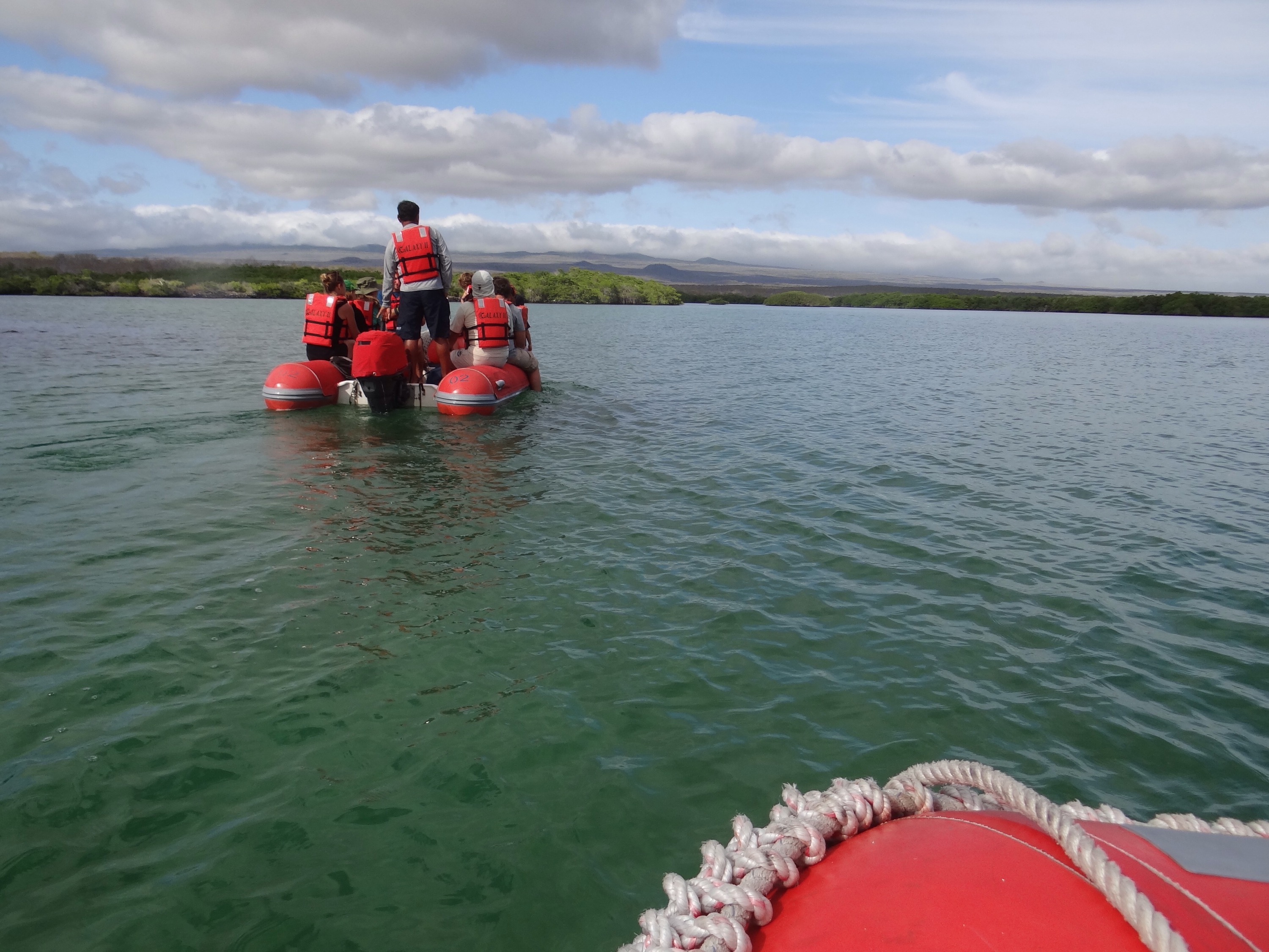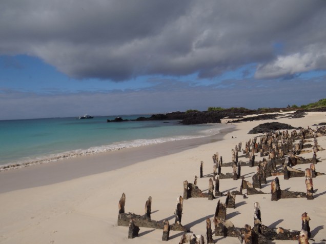 On Santa Cruz Island, Black Turtle Cove, with another zodiac exploration, and the white sands of Bachus Beach for more snorkeling were awaiting us. Bachus Beach has a rather unique decrepit monument marking its coast – a rusted hull of a ship from WWII had run aground and since been abandoned. All that remains are spiky pieces of the frame. While interesting for photographers, this metal is dangerous for the wildlife. Freddy told us that a sea turtle had become caught in the wreckage when trying to reach her nesting site. They tried to rescue her but it was too late.