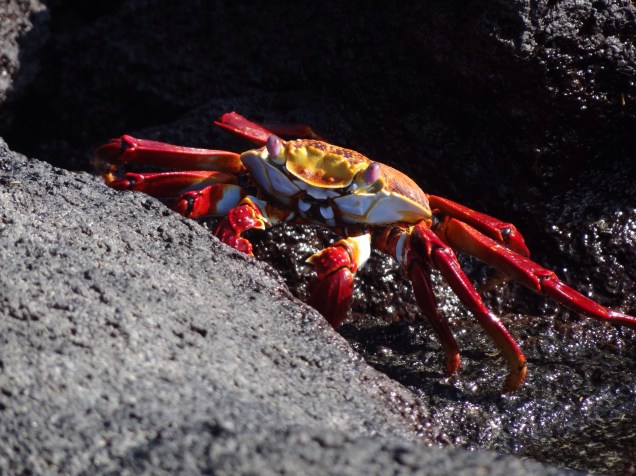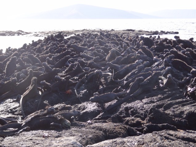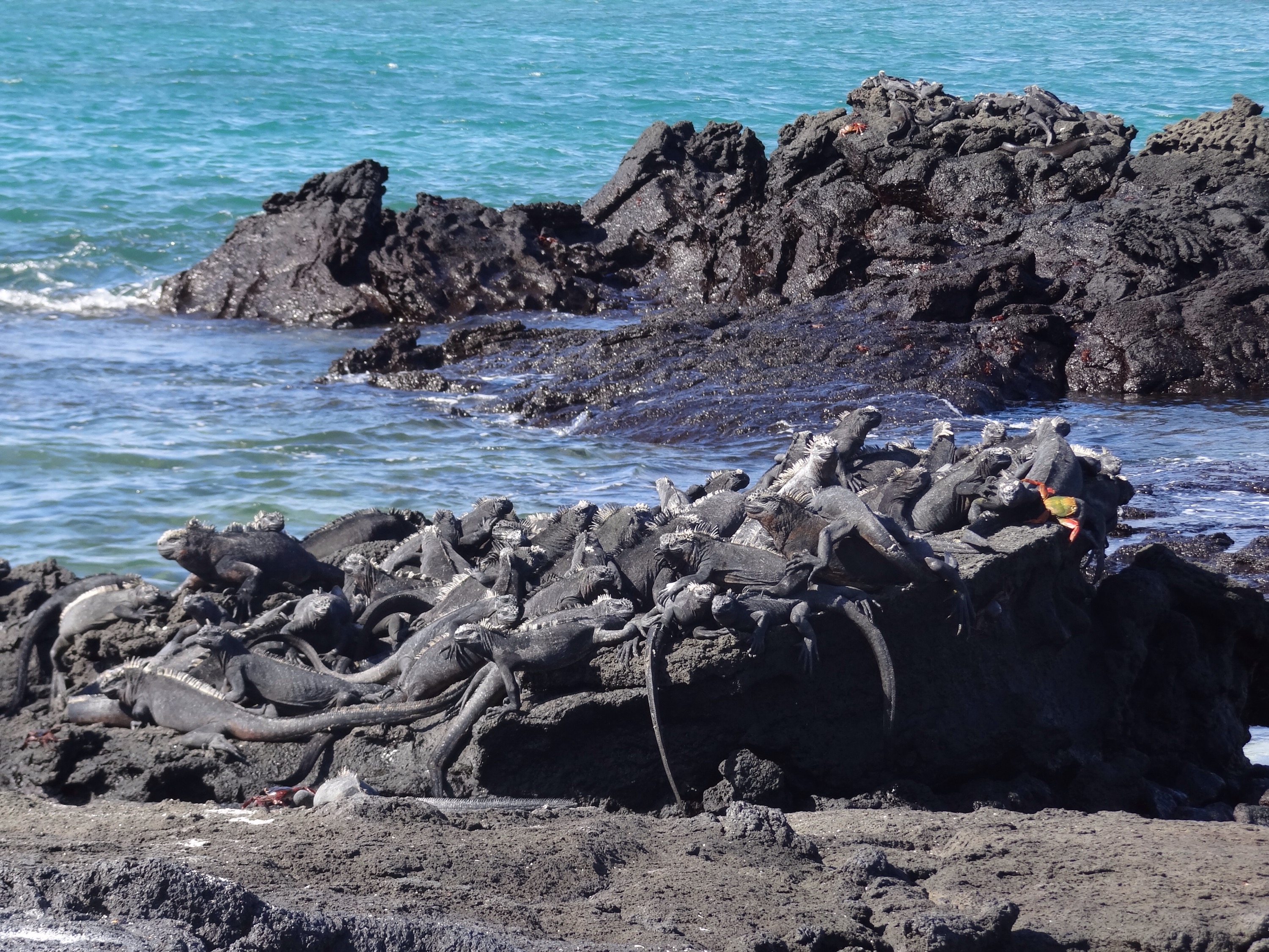 We visited Punta Espinoza on Fernandina Island, the westernmost in the archipelago. This area is entirely covered with lava rock and has marine iguanas stacked 3 high and a scattering of Sally Lightfoot crabs, their bright red bodies adding a splash of color to the otherwise black landscape.