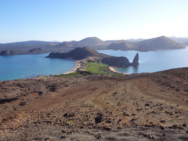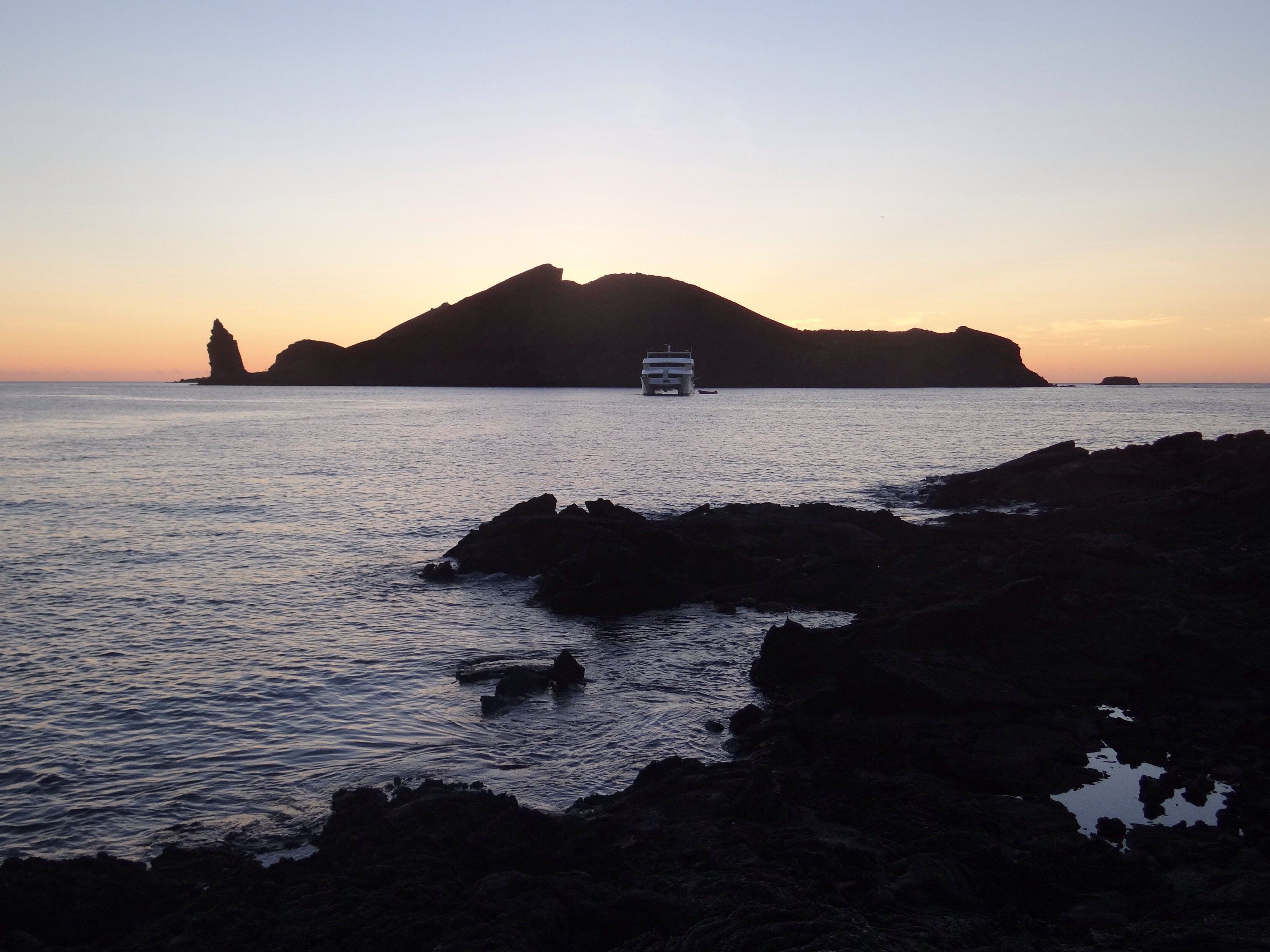 Our last day at sea was spent hiking on the barren coast of Sullivan Bay on Santiago Island, where uneroded lava flows have created fantastic shapes and patterns, and a snorkel and hike near Pinnacle Rock on Bartolome Island, the most photographed landmark in the archipelago.