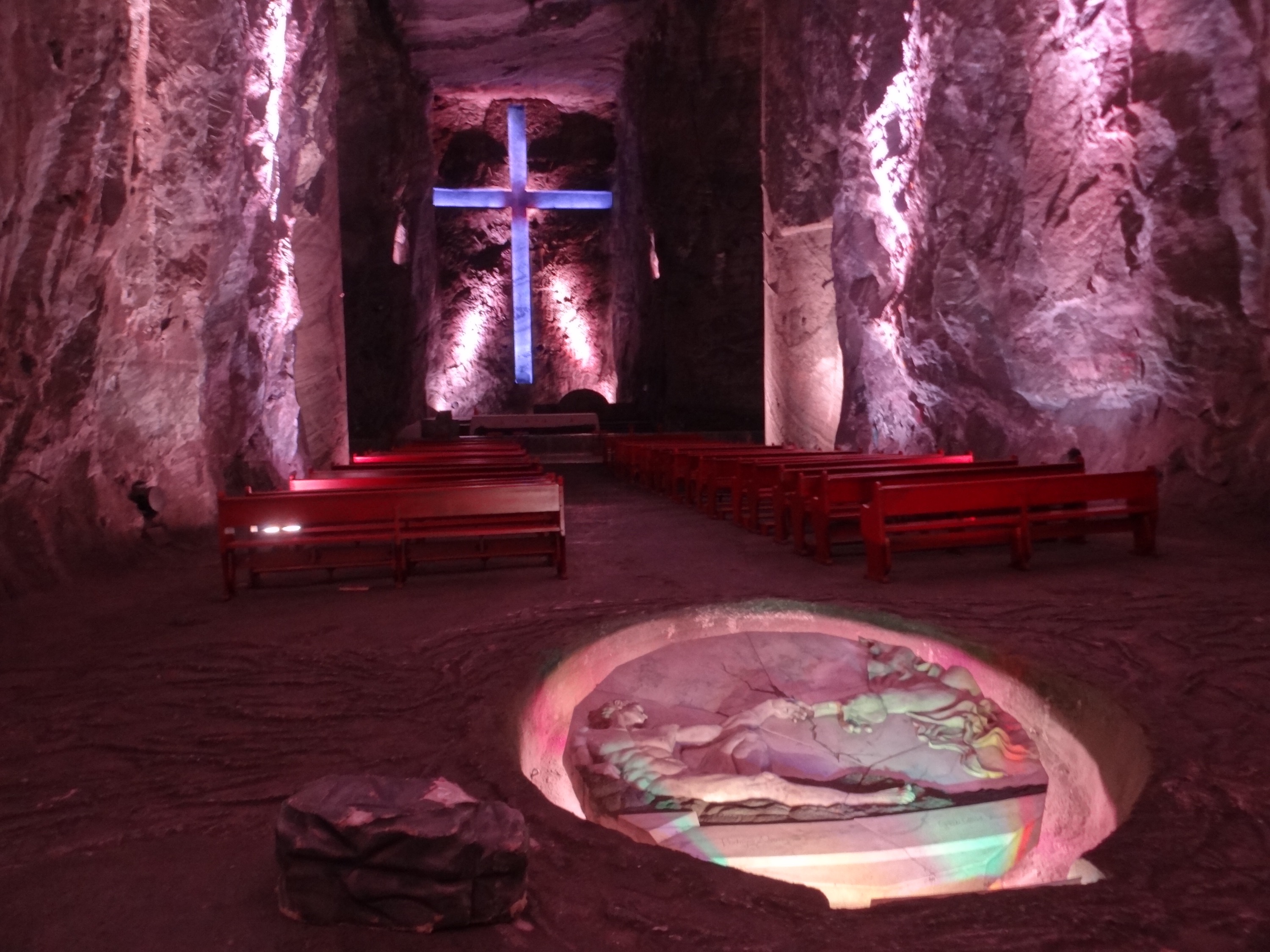 The Salt Cathedral, what I thought was going to be a sad attempt at a tourist attraction, was actually beautiful and fascinating. It was an old salt mine that had since been converted to a cathedral and was therefore, entirely underground. Religious monuments had been carved into the salty crust and as you traveled deeper into the tunnels, the rooms were illuminated with ethereal lights. The entire complex was a maze and there were strategically placed EXIT signs in case you became lost. It was a boon for photography and I took my time wandering around to get the good shots. Of course, there were also strategically placed souvenir shops and food vendors just down the hall from the main chapel, but I expected as much.