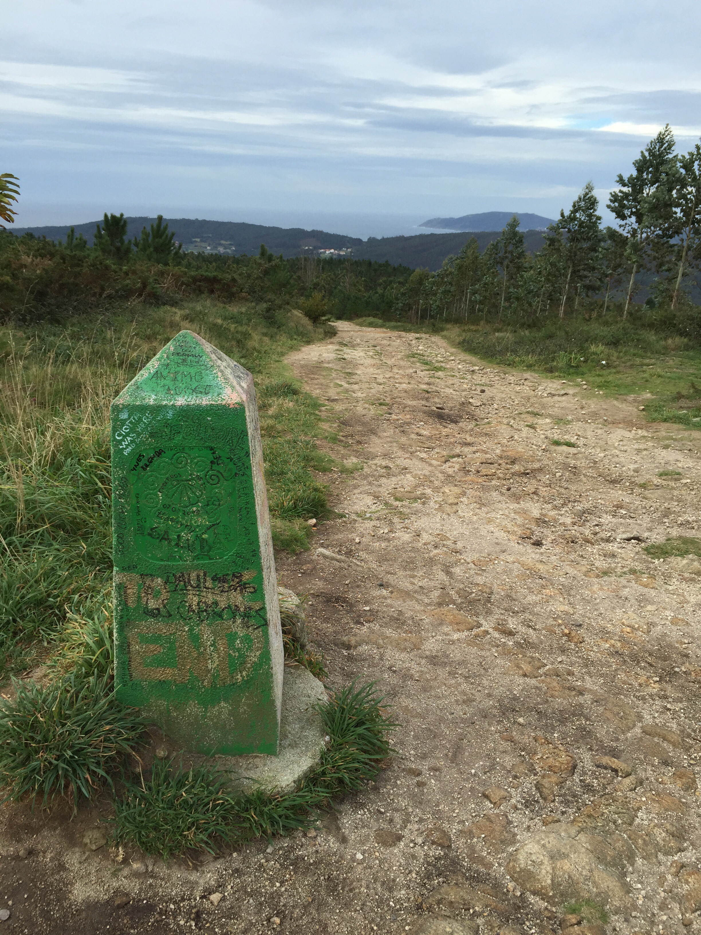Waking up on the morning of the third day (in reality, it was the 40th day), I was filled with the excitement that had been missing in Santiago.  I put on my hiking shoes and backpack for the last time as a pilgrim.  The path ran through acre upon acre of farmland.  The smell of manure was nearly constant.  And the Camino markers seemed to grow more frequent, if only because I was moving with more anticipation.  I walked over a small hill and took a photo of a marker.   Only afterward did my eyes move to the distant background and focus on the ocean.  I still had about 18km more to walk that day, but I could see the hazy outline of the sea.   It was surreal.  I wasn’t expecting it yet and with tears in my eyes, I fell to my knees. The previous 40 days began to flash through my mind, every ache, every landscape, every friendship, every step.  I practically ran the rest of the way – it was nearly all downhill.