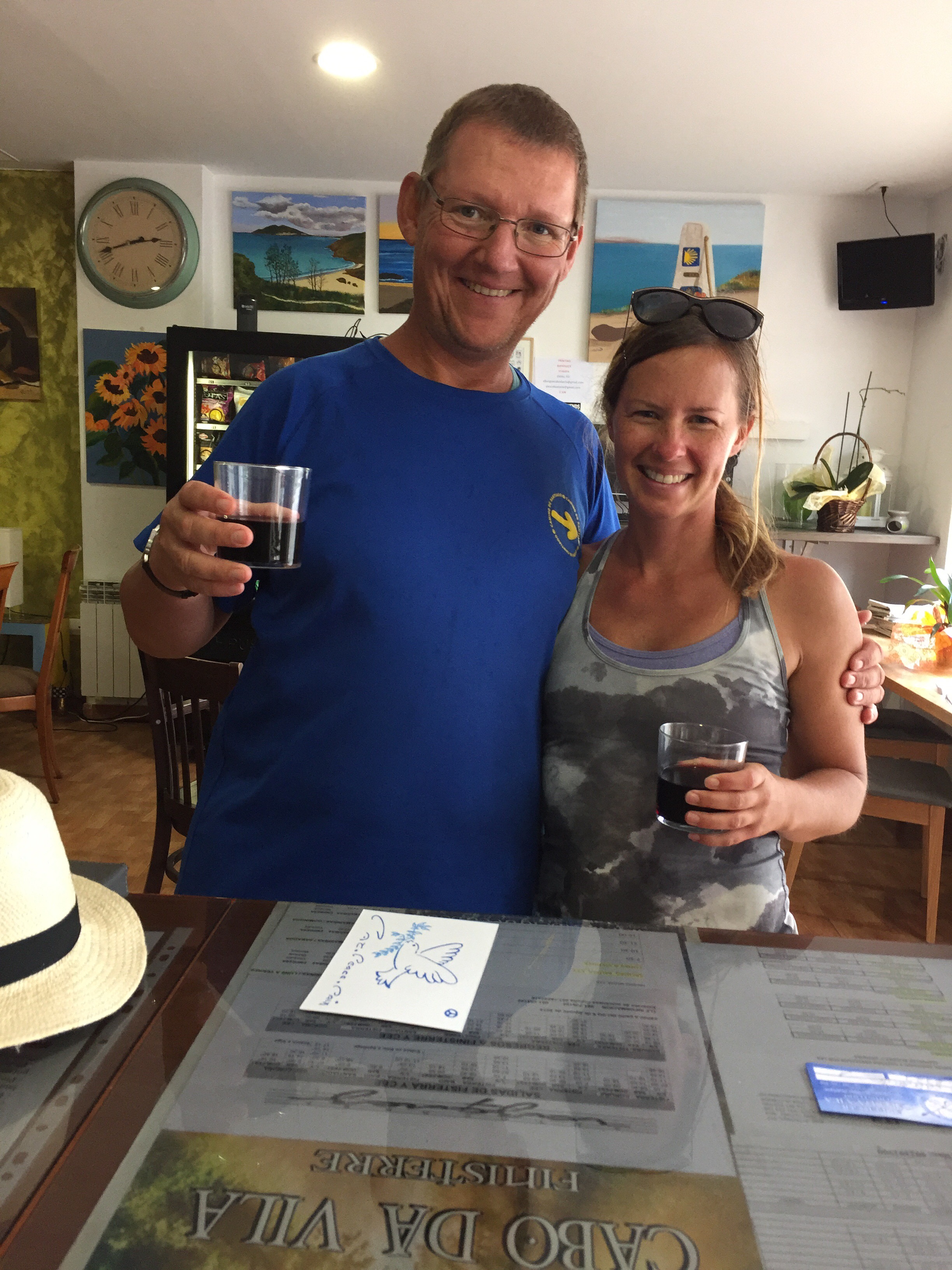 The steps at the lighthouse were scattered with pilgrims and tourists alike.  Joe and Kim, from Australia, and a couple other familiar faces were also there, which was a happy reunion.  I sat on the rocky coast, drinking red wine out of a Dixie cup, with good friends, watching the sunset over the Atlantic Ocean.