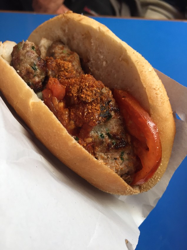 Back to Meknes in the afternoon for some free time exploring the local markets and our first real encounter with aggressive Moroccan vendors.  Little did we know until much later, but we had a police detail for the day that was following us around to make sure things didn’t get out of hand.  Our lunch in Meknes was a camel burger while we huddled in a small booth filled with smoke from the grill.