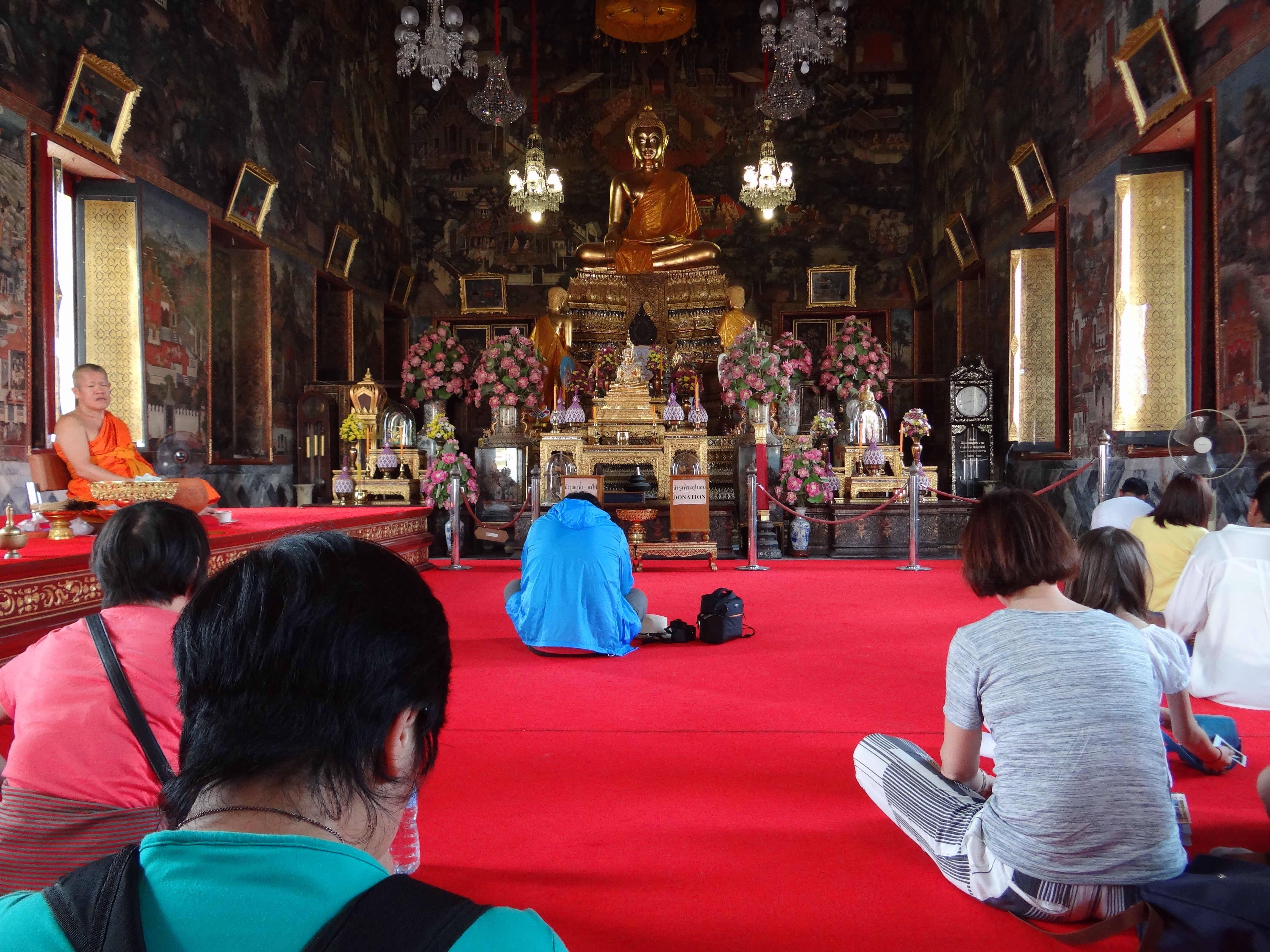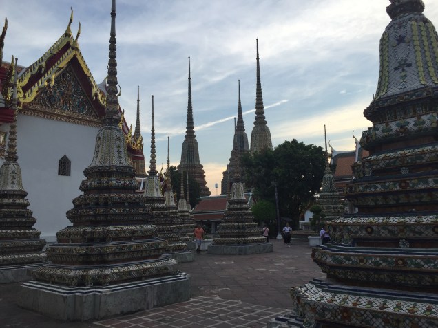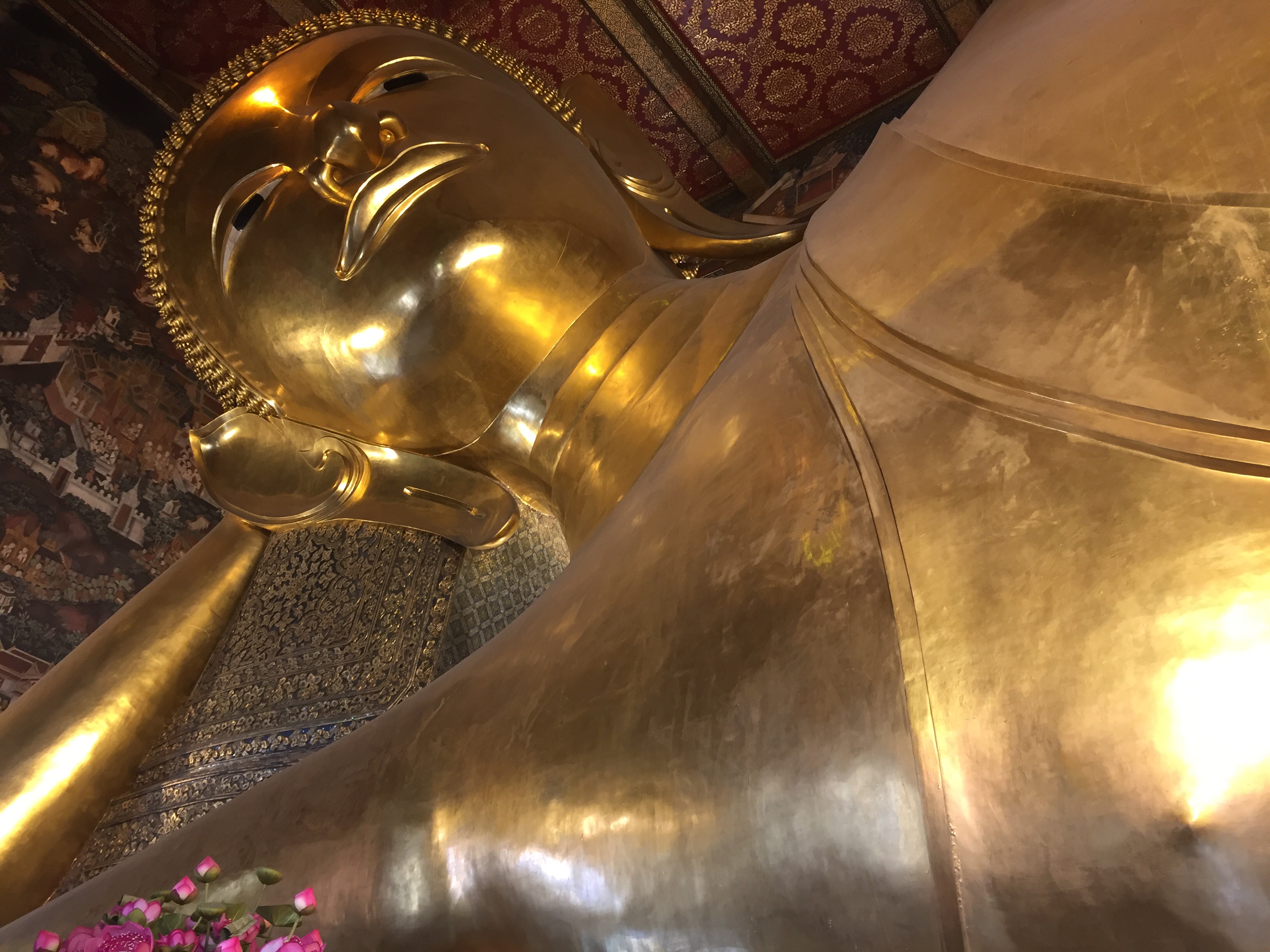 From there, I visited the nearby 16th century Wat Pho, the Reclining Buddha, which is 46 meters long. It was also grand and impressive with the queue and selfie sticks to go with it. Still a little tired after my international flight, I thought I would take advantage of a traditional Thai massage. Near Wat Pho, the massage school was teeming with visitors. The price was about $11 for a 60 minute massage. Yes, please! Little did I know at the time, but this was about twice the price of the going rate for one hour massages. I was due for several more Thai massages in my future. The traditional method involves a bit of assisted stretching and a series of pressure points to release any built up tension. In spite of the fact that we were lined up like sardines and you couldn’t stretch out comfortably without touching the client next to you, it was heavenly.