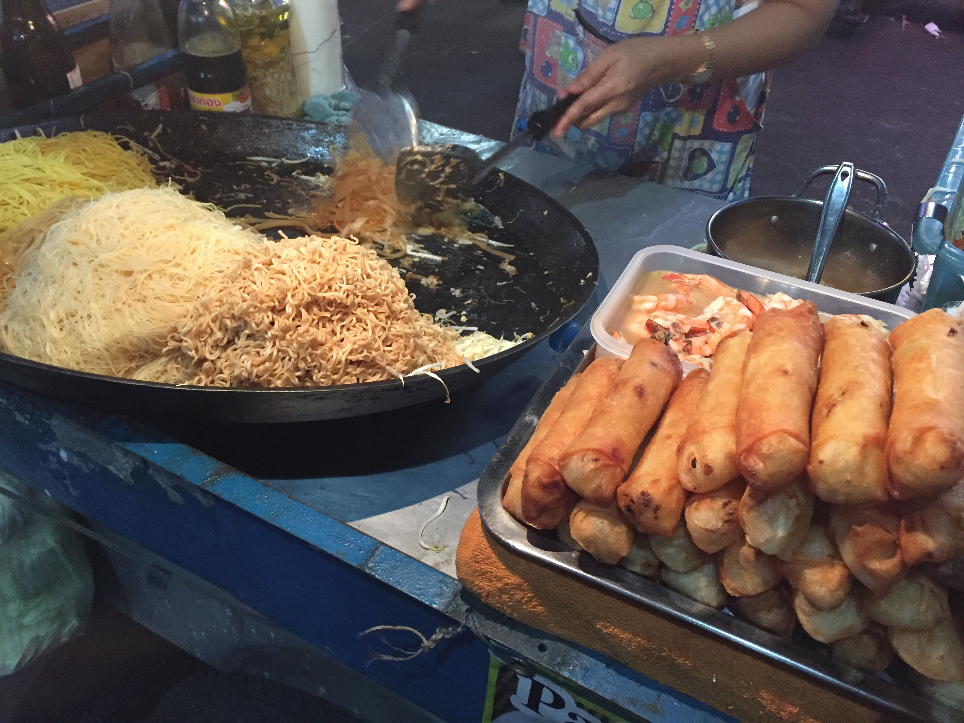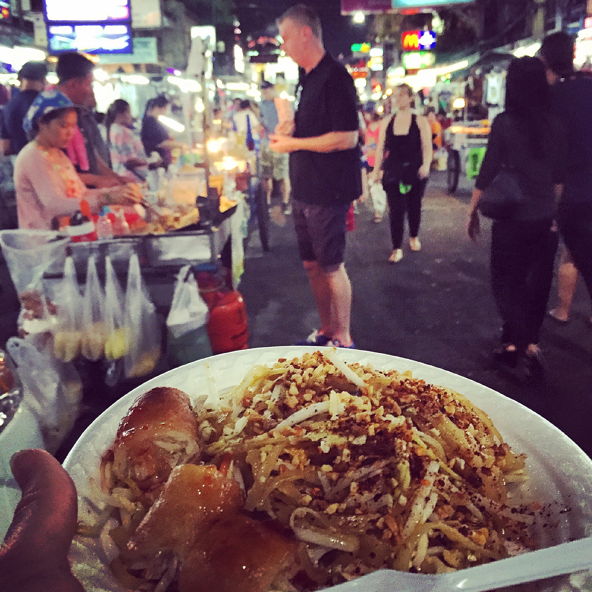 I couldn’t leave Bangkok without the obligatory visit to Khan San Road, the “backpacker” road, a short side street with bad Western food restaurants, delicious cheap street food, cheap Thai massages in recliners right in the street, vendors selling everything from elephant pants to noisemakers to crispy scorpions on a stick, tattoo parlors, competing music blaring from several different bars. Yes, this entirely encompassed everything a young first-time backpacker might desire. It was sensory overload and I didn’t completely hate it. I felt like a backpacker again, even though this wasn’t really my scene. I stood in the middle of that road and watched a group of rowdy young Germans egging each other on to buy a scorpion snack and it kind of made me smile. Silly and non-authentic as this scene might be, this is my life and I love it.