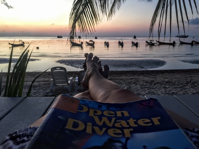 The tiny island of Ko Tao loomed large in my itinerary.  I wasn’t going to Ko Tao for the sunsets (which were impossibly amazing) or the beaches (which were crowded, yet calm and serene).  I was going to scuba dive.  Commonly known as the cheapest place in the world to earn an Open Water certification, thousands of travelers show up every year to earn their place in the underwater community.  I wasn’t scared.  I was excited.  Confident.  Determined.  Earning this certification would shape the rest of my travels in Asia.  I imagined traveling to sought-after dive sites that were remote and revered, that only someone with plenty of time and patience would visit, and upon arrival I would be surrounded by other divers and we could share stories about shipwrecks and a newly-discovered species of sea urchin and the like.