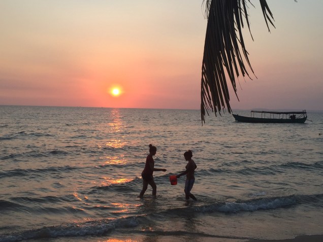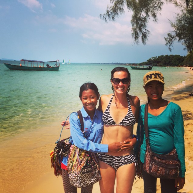 Meanwhile, I parked myself at Otres Beach for the next 3 days trying to decide what to do next. Otres Beach was a long stretch of narrow white sand, lined with cheap local restaurants and bars, and absolutely infiltrated by the massage, fruit, and bracelet ladies. You couldn’t lie undisturbed for more than two minutes without a woman asking if you wanted to buy a bracelet or some pineapple. The ladies were also very territorial. If you so much as said hello to one, she claimed you as her client and would become aggressively angry if she thought you might buy something from a different lady. Competitive stretch of sand it is. I didn’t really want to buy anything so I tried to stay out of it, although at one point, I was charmed by two young girls who were making friendship bracelets and I was suckered into buying one for only $1.