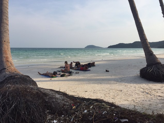 Phu Quoc is a long, relatively skinny island that belongs to Vietnam, but is more off the coast of Cambodia. Long Beach, aptly named, is the most central and populated stretch of sand, but with a little initiative and some wheels, you can escape the crowds. Aaron, Dino, Celine, Leon, Steve, Chris, and I found a stretch that seemed perfect at first, but upon closer inspection, it was the same as so many of the other beaches I had encountered so far – it was littered with garbage.