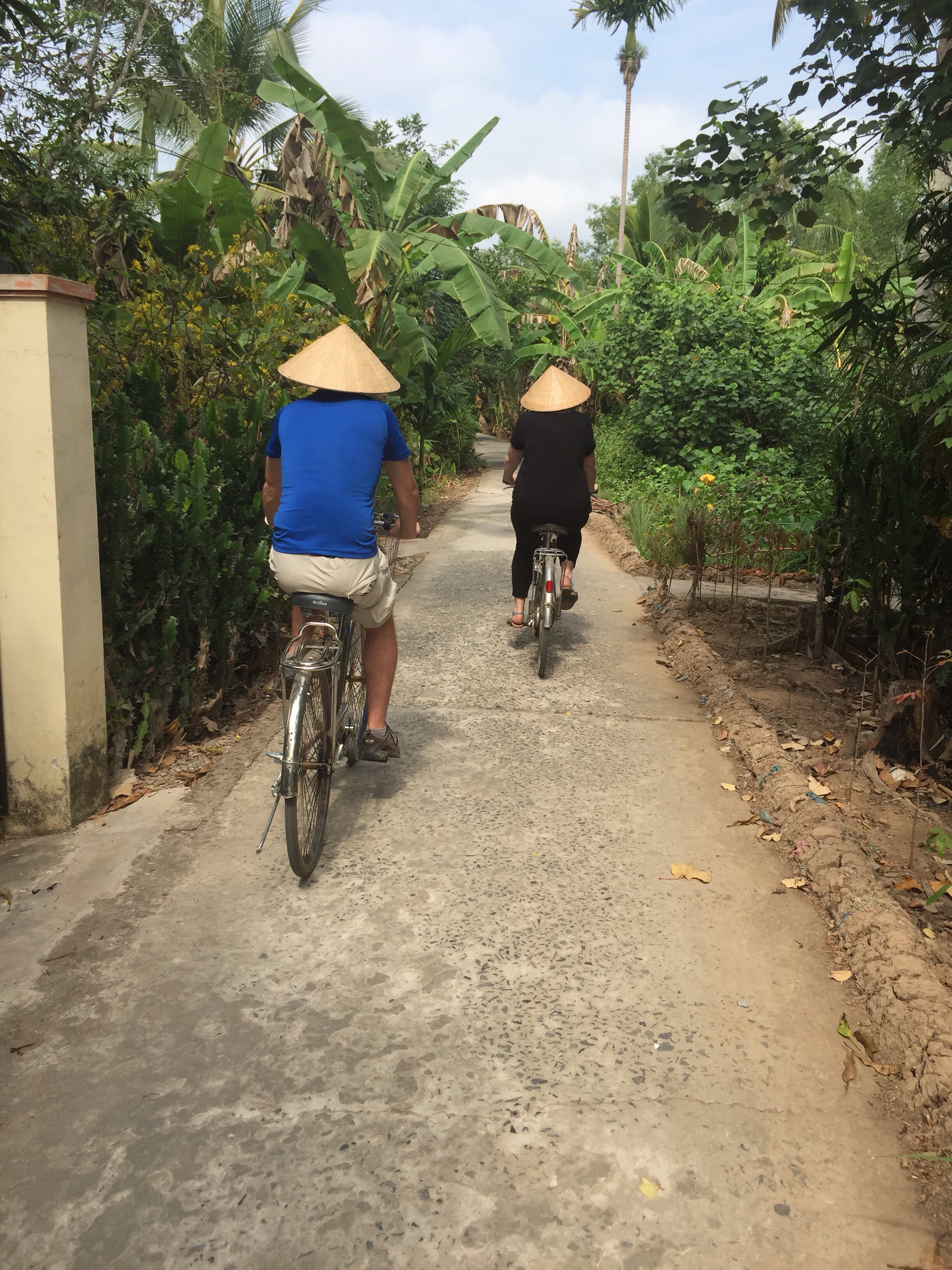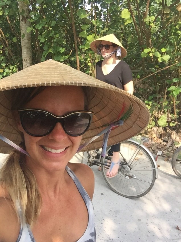 Market activity was winding down while the morning was still young so I had time for a bike ride. Donning traditional Vietnamese hats (which have a remarkable cooling effect from the intense sun), I don’t remember much about the places we cycled to, mostly because businesses were closed for the holiday. There was a blacksmith and an apothecary and a school, a rice factory and a rice wine factory too. What I remember most were the shouts “Hello!” from every single person we encountered. They all smiled and they all seemed genuinely pleased (maybe a little amused) that a small group of westerners were exploring in this backwater corner of their country. And truth be told, I was too.