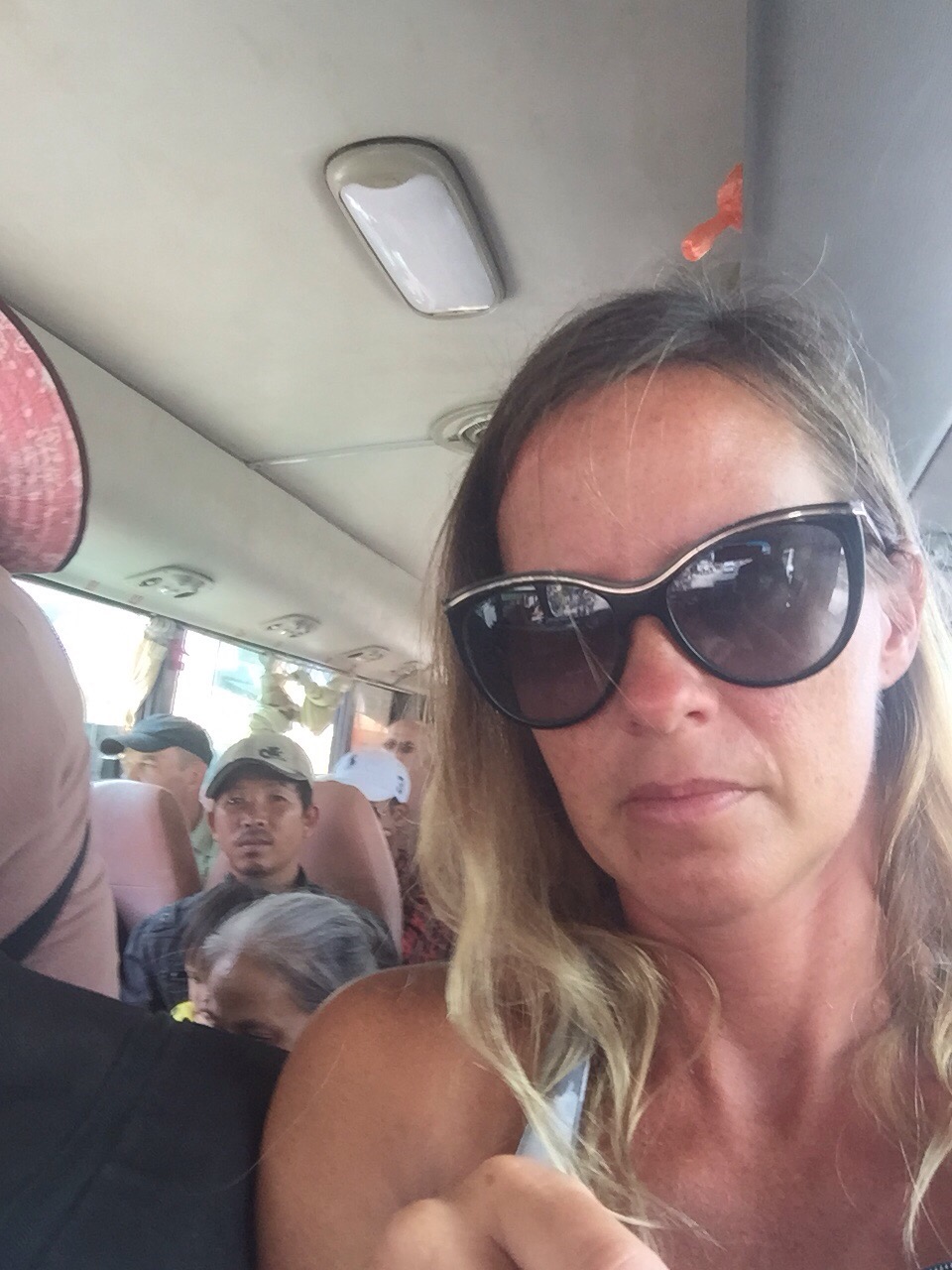 A ferry back to the mainland from Phu Quoc, a mototaxi to a random food stall where a guy is using a pencil to hand write a bus ticket to Can Tho, and I’m left to wait an hour at a plastic kids table, not being told what is going on, if a bus is coming, what time, or how much it will cost because no one speaks English. The whole process is exasperating and a little amusing. Yet, I wait. A minivan eventually arrives already packed with people. I quickly check my Rome2Rio app – how long is this ride again? 2-3 hours. The sliding side door won’t open because all the luggage will fall out so I have to crawl through the front seat to the one remaining seat, next to an elderly woman who has her bare feet propped on the driver’s headrest in front of her. I learn that the seat is vacant because it’s not actually there. The cushion is askew so I’m half on it and half on the metal frame. There was luggage in my foot space so I had to sit with my legs crossed and pulled up onto the metal frame. I don’t bother to look for a seat belt.