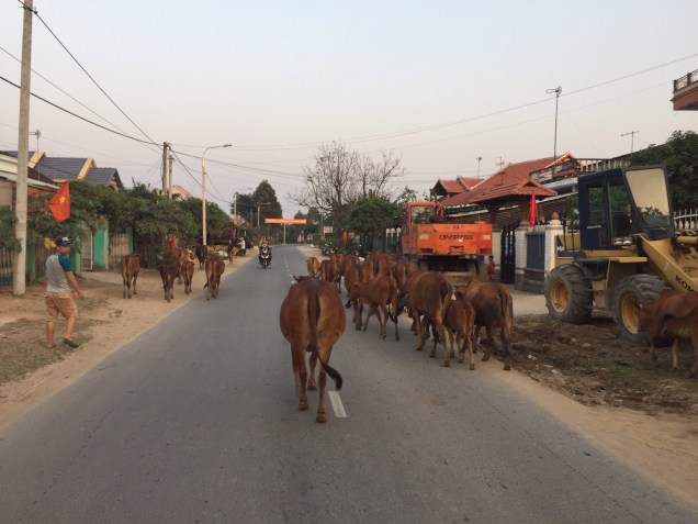 The mototaxi left me on the front porch at a quarter past six o’clock and it was completely shut. I didn’t even question it when I saw a cafe across the street. There were people sitting outside watching TV and I was hopeful I could order a coffee. I walked to an empty table, banging into things as I maneuvered my 2 backpacks through the cramped patio, and sat down. A young woman came and offered me coffee. An elderly man from the adjacent table shifted his chair to join me. His English was basic, but he asked where I was from, if I had had a long journey, if I needed anything else. He tried to explain what they were watching on the television, but that was more difficult through a language barrier. As we sat silently staring at the TV, it dawned on me that I wasn’t sure if I was actually at a cafe or if I had just walked into someone’s private yard and made myself at home. In my defense, cafes and private homes are often the same thing in Asia. Either way, they were all very kind and accommodating and it was a comfortable place to wait.