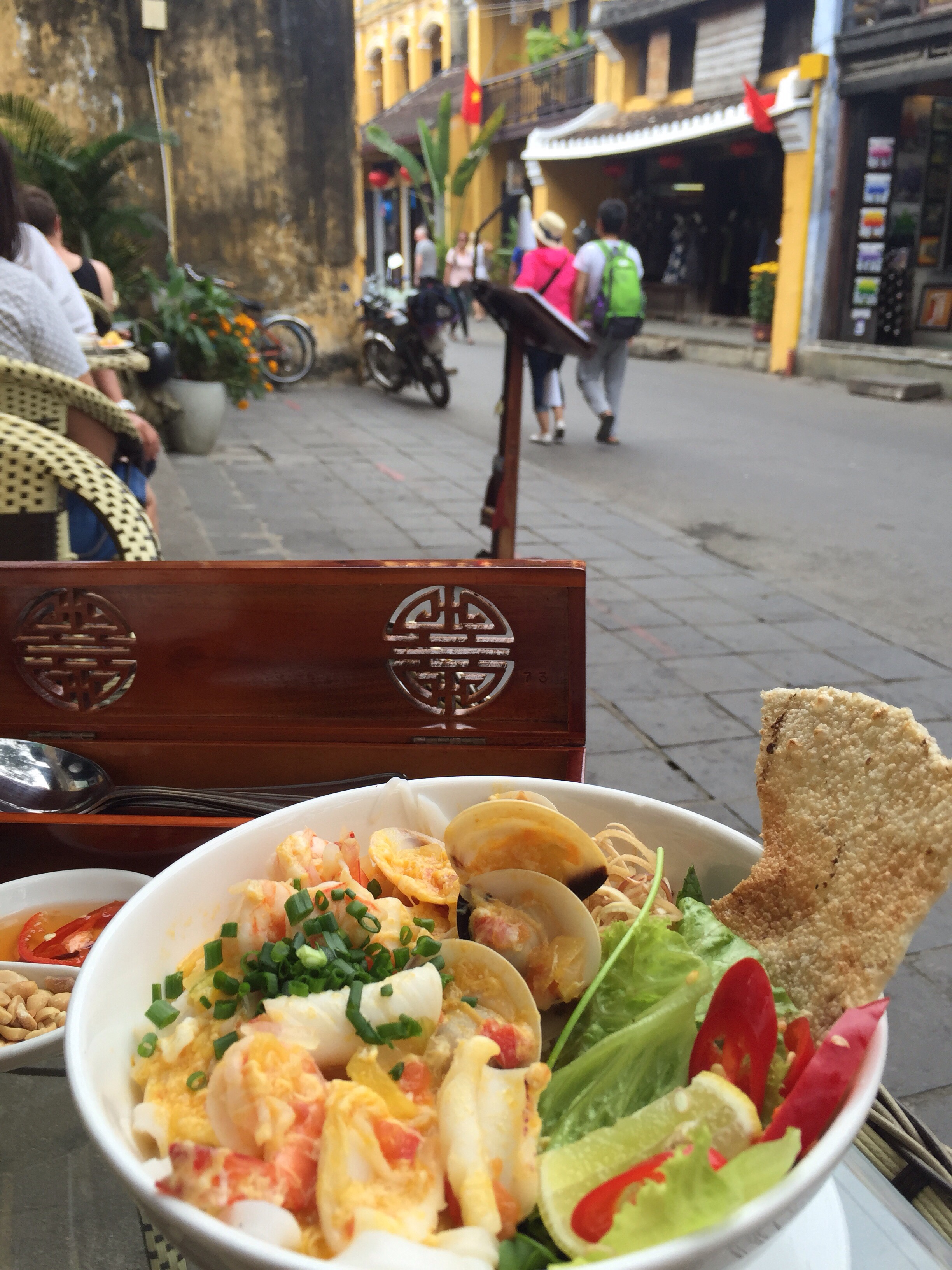 Stephie and I arrived in Hoi An at 5:00am on what was supposed to be an overnight bus to Da Nang. The bus wasn’t scheduled to stop in Hoi An, our destination, so we asked the driver if he would let us off on the highway a few miles outside of town. Of course, we expected to arrive after the sun was up because everything seems easier (including sorting out a taxi from the side of the highway) in the light of day. A taxi wasn’t in the cards, but of course, two mototaxis had been expecting us. They always are.