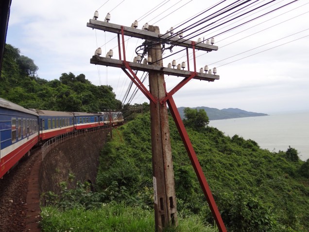 The scenery didn’t fail to disappoint. The sea cliffs and crashing waves were stunning. It’s true the train would stop mid-way between stations for inexplicable prolonged delays and perhaps if we had been packed shoulder to shoulder with other travelers in a steamy coach, it wouldn’t have been pleasant at all. But as it happens, we were the only stubborn souls that wanted to see the Vietnamese coastline by train and we were rewarded nicely.