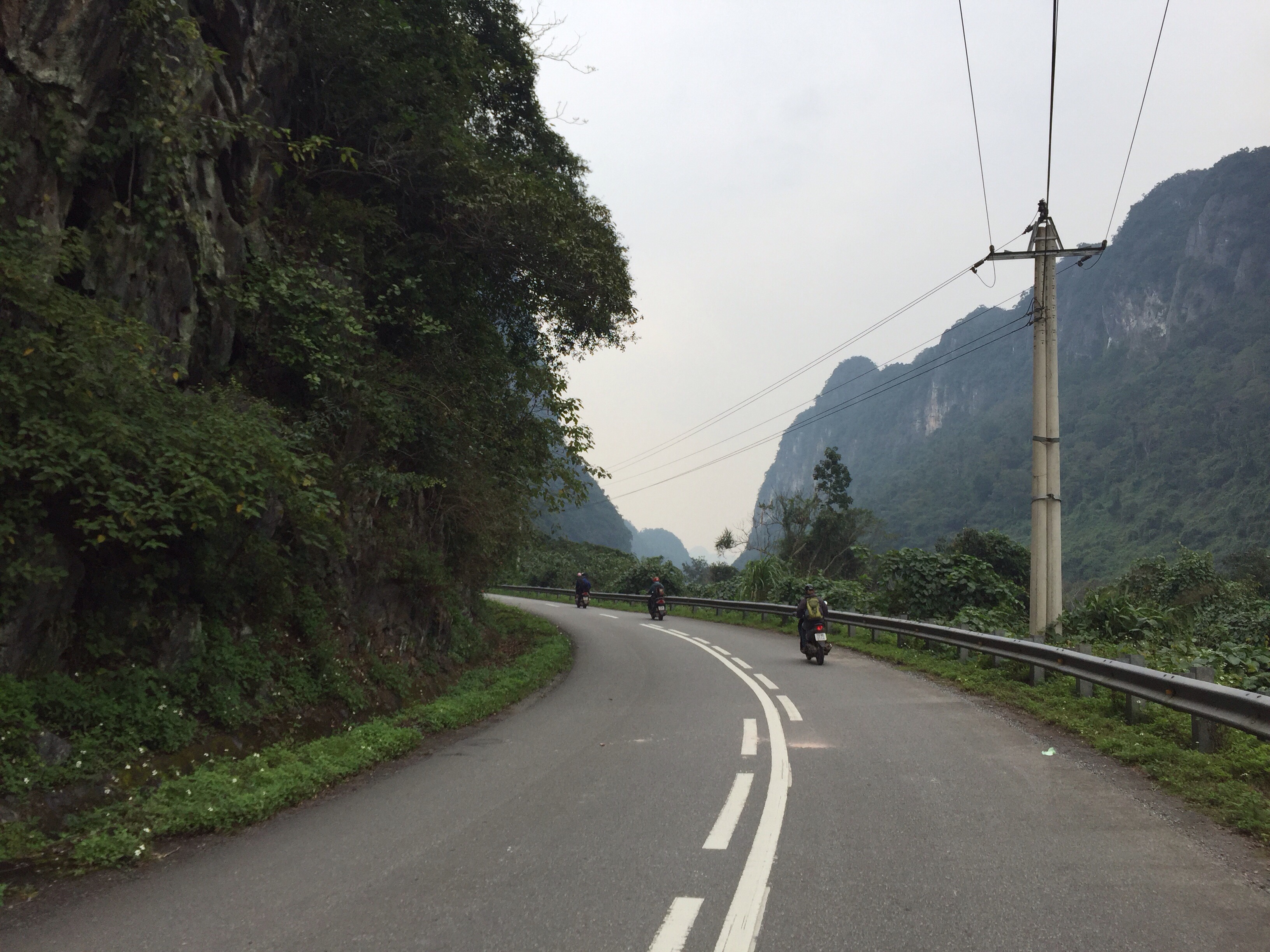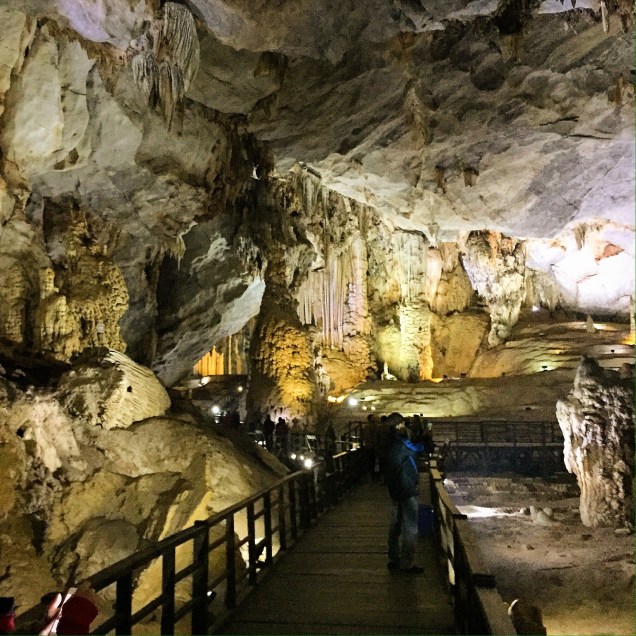 Now that the sun was up and I could see what the veil of darkness had obscured, I realized that Phong Nha was jaw-droppingly beautiful. Limestone peaks, covered in lush green jungle foliage, surrounded us on every side. We were nestled in a valley in the Ke Bang National Park. Our party included Jessie from Germany, Bjorn and Daniel from Sweden, Suzanne, Stephie, and I. In a parade of motorbikes, we were ready to explore. The road wound through the cliffs, revealing stunning landscape and picturesque views. I rode on the back of Stephie’s bike. The crisp air was a refreshing change from the stuffy humidity in the south of the country. While Hue had felt disappointing and monotonous, Phong Nha perked up my travel mojo almost instantly.We parked the bikes and climbed a steep path to the entrance of Paradise Cave. From the main opening, a vast cavern swallowed us almost immediately. Stretching 31km long, Paradise Cave was only discovered in 2005 and has since been turned into a series of illuminated wooden platforms and stairs that allow you to descend 1km inside. Jessie, who had also been traveling for quite some time like me, confided that it had been awhile since she had been impressed. I felt the same way, but for both of us, Paradise Cave was a turning point. It was such a unique and otherworldly panorama that the weight of boredom magically lifted and those travel excitement butterflies returned that I had been missing.