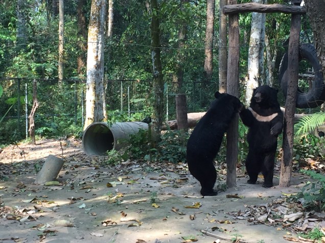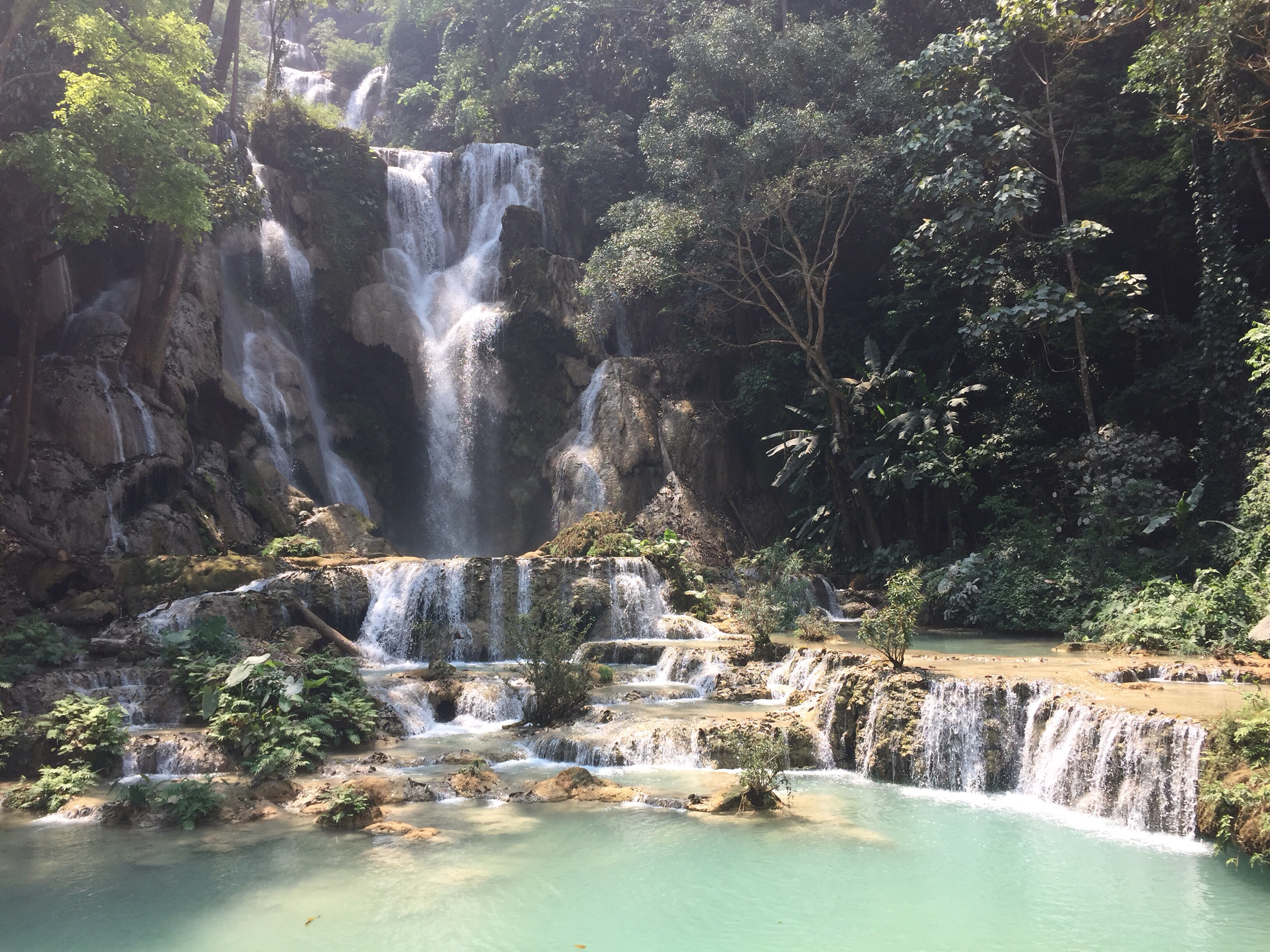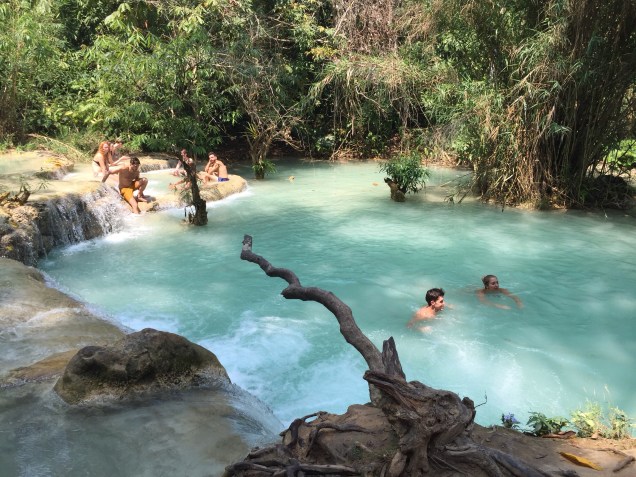 The Kuang Si Waterfall and Asiatic black bear sanctuary was a short drive outside of town and while Luang Prabang is not considered an especially busy city by local standards, I always relish the opportunity to get out in nature. While not the only waterfall in close proximity to the city limits, Kuang Si was the only one with flowing water at the moment. It turns out when the dry season strikes, it really is the dry season. The waterfall is composed of three different tiers with pools and mineral rich water to bathe in. The water was cold and refreshing; I almost missed my return transport because I lost track of time in the peaceful scene. On the way back down, I couldn’t tear my eyes away from the black bears, also known as moon bears, which are an endangered species in Asia. Their bile is used in Chinese medicine in a variety of cures and also in many standard bath products. Seeing these bears frolicking around in a playful manner was enough to melt anyone’s heart and hopefully reconsider the ingredients of their shower gel!