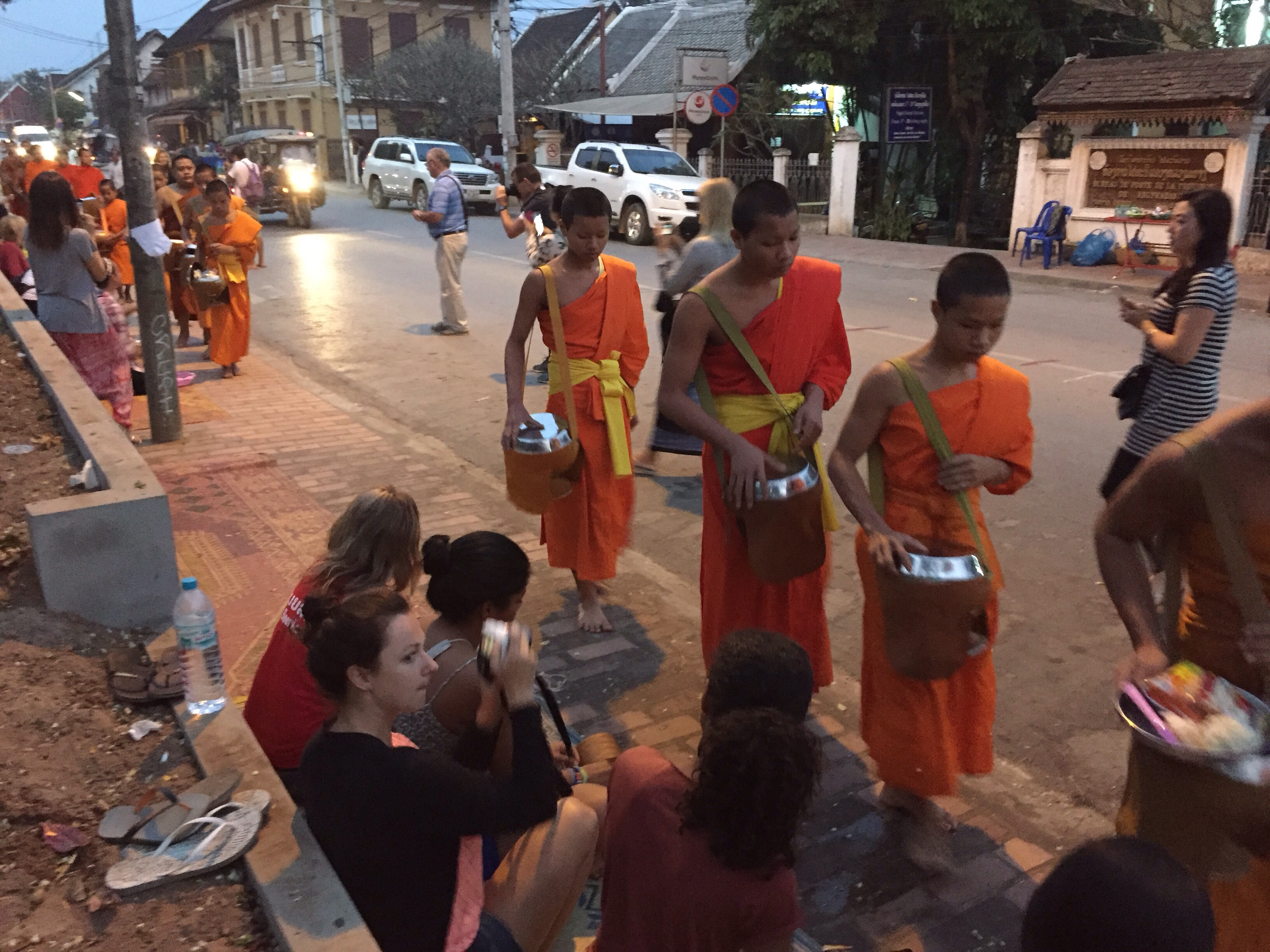 All of these activities had some element of cultural heritage, but one ritual in particular that Luang Prabang is most famous for is the procession of monks that winds through the city streets for alms-giving every morning. This is an age-old tradition for the centuries of monks who have always lived here, and while there were many tourists who participated and tried to follow local customs, there were many others who acted disrespectfully. The ritual is such that the faithful will sit quietly, without shoes on a mat, while offering donations of food to the monks. The monks, in turn, partake of the food for their one meal in the day. I saw a mob of Chinese tourists following the procession, with camera flashes blinding the monks at times. This made me feel sad for the loss of authenticity of what these monks were there to represent and I left feeling kind of sleazy for having been a witness to such blatant bad behavior as if all of us were complicit in some strange way.