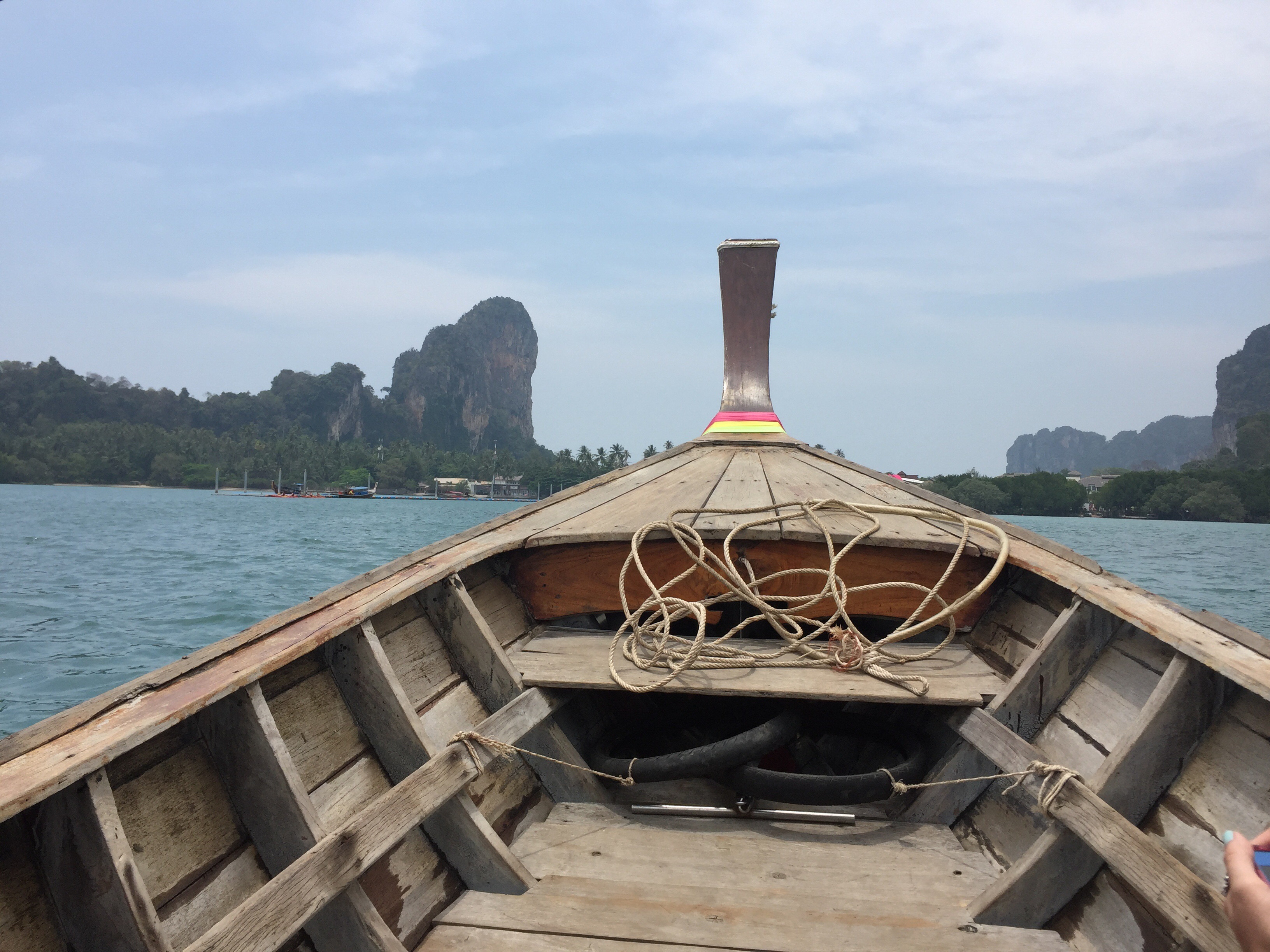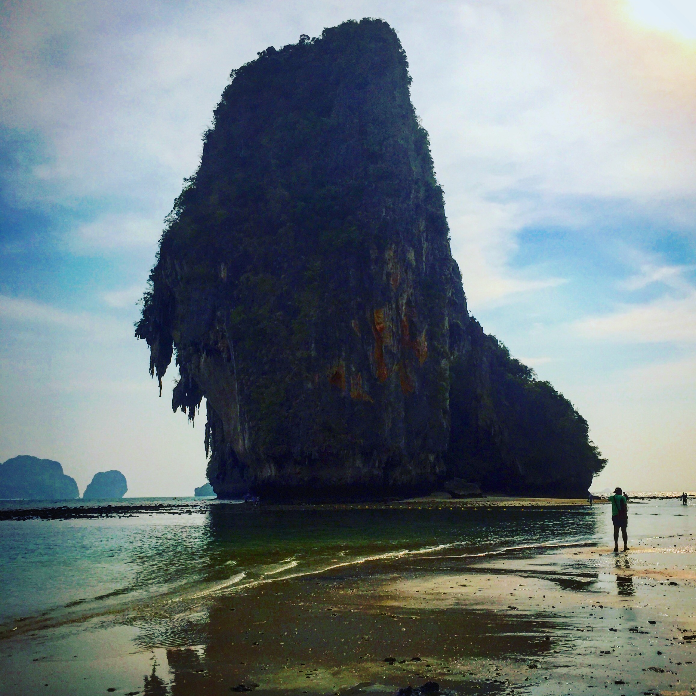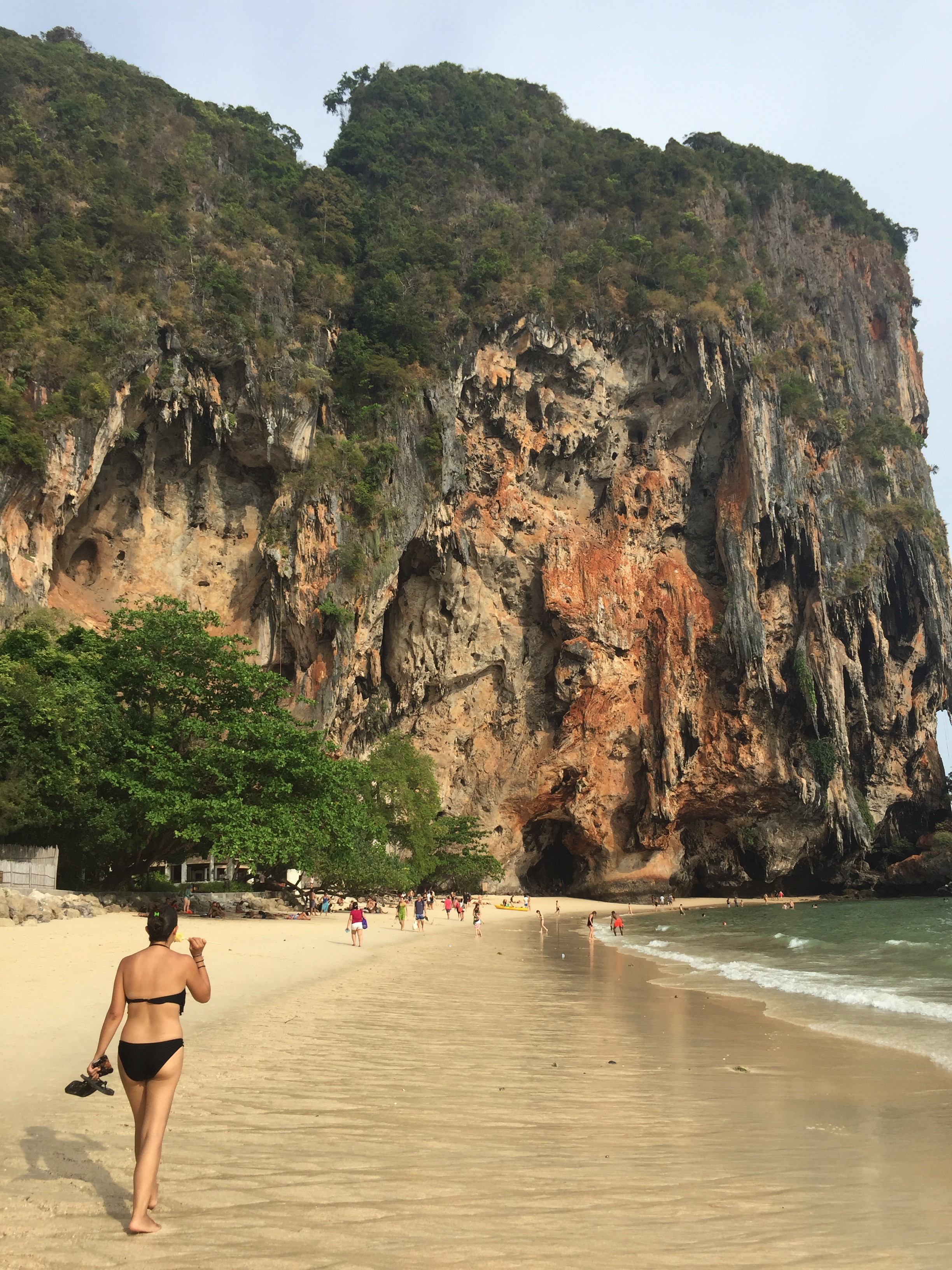 My plan was to spend one day at Railey Beach and then take the ferry to spend a longer holiday on Ko Lanta. I met Ofelia that morning. Traveling solo from Colombia, Ofelia was also going to the same beach with another girl she had met out the night before. The three of us took the 45 minute boat transfer to Railey. While not an island, a boat was the only way to reach this isolated beach. We disembarked on a long rubber pier and at the advice of our captain, we followed a thin dirt path to one of many beaches on the narrow peninsula.