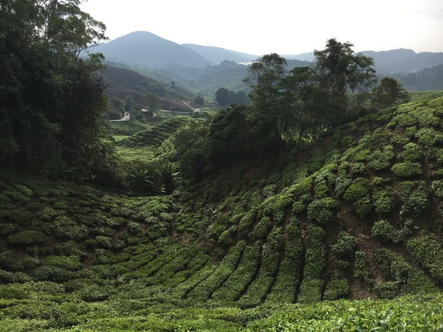 The distance between Penang and Kuala Lumpur is mostly covered in tropical jungle foliage and a number of vast tea plantations. The difference between the two? About 15 degrees C. After the stifling heat in Penang, Martyn and I wanted to do some trekking in a decidedly more mild climate so the decision was clear. We headed south and up into the atmosphere of Tanah Rata. The area, collectively known as the Cameron Highlands, was once famous for its high-grade tea, but after several decades of modernization moving away from manual labor, the production processes are such that the tea is no longer superior to its competitors. No matter, the rolling hills covered in camellia were enough to make even a hardened traveler (that’s me) swoon.