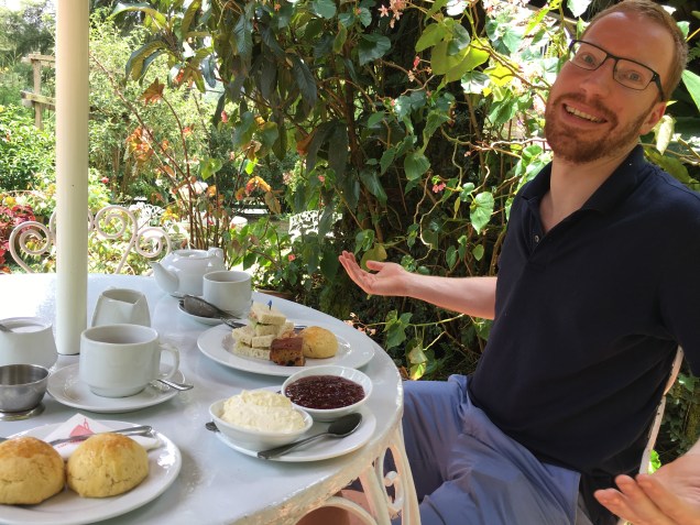 And you can’t visit the Cameron Highlands without drinking some tea! For a traditional English garden presentation on our trek back from the Mossy Forest, we stopped at The Smokehouse, which is also a quaint bed & breakfast off the beaten path. Amongst pots of hydrangeas and water lilies, I relied on Martyn’s well-seasoned skills to show me the proper way to take my tea. I don’t dislike tea exactly, but I’m rather indifferent to it. I’ve been known to willfully choose a green tea or a chamomile from time to time, but I will always prefer coffee. It’s in my genes. Regardless, we left the humidity behind us in Penang so it was fun to enjoy this typical English ritual with scones and fresh cream on such a pleasant day on what would be our last afternoon together.