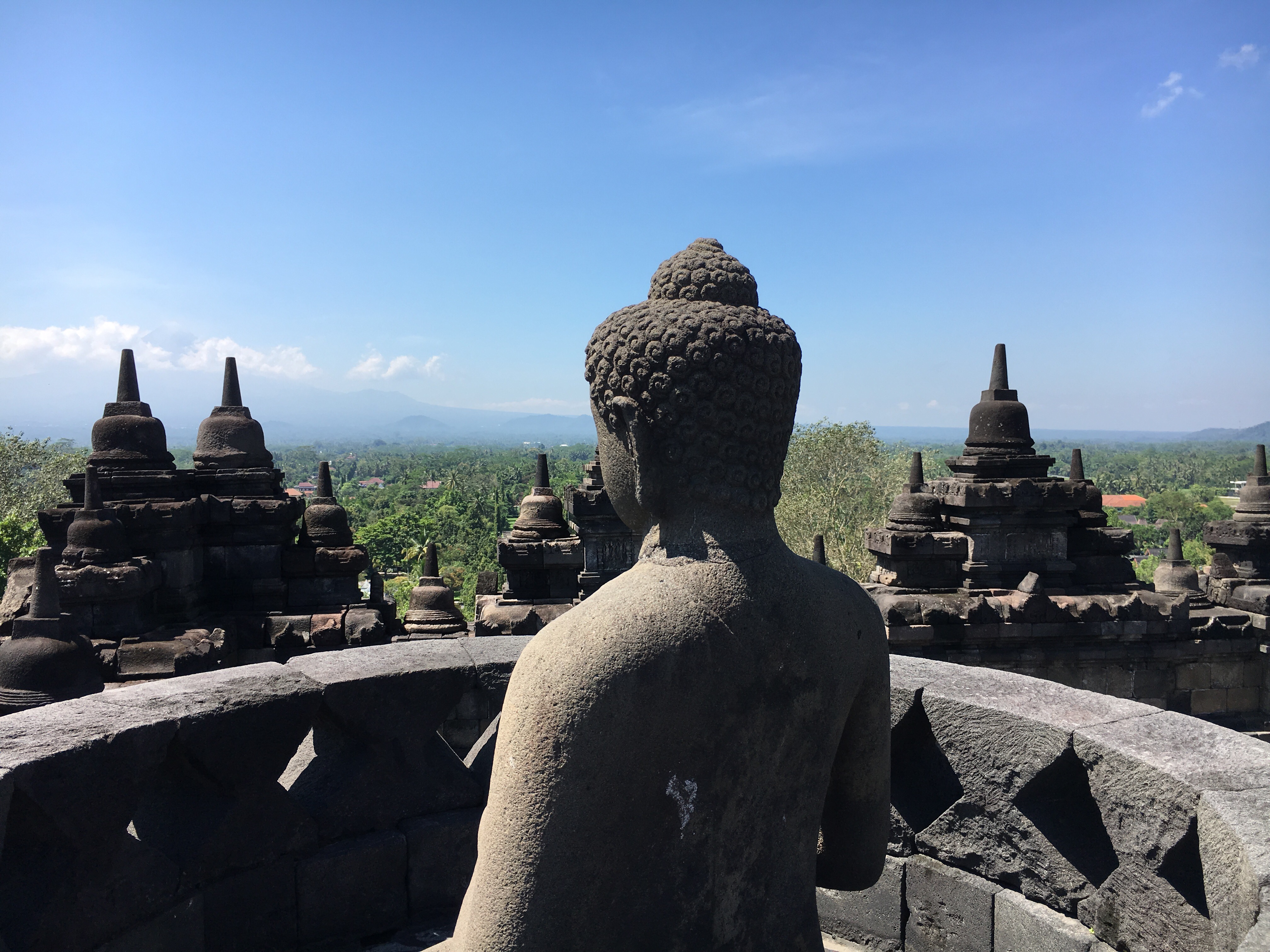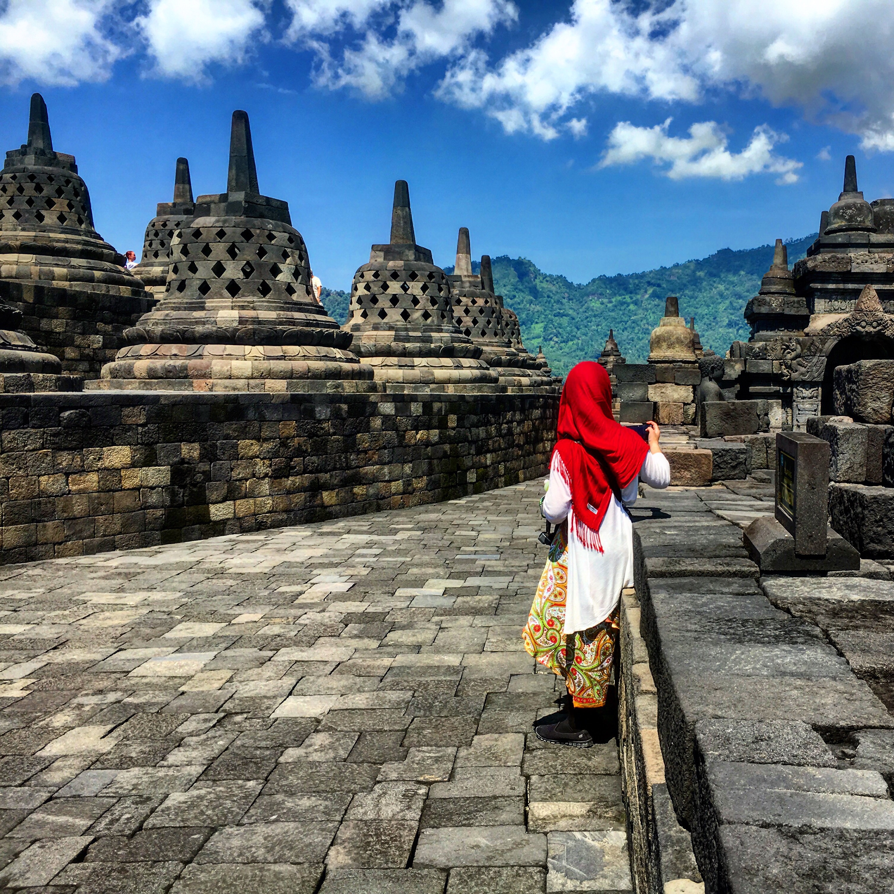 There were two temples on Java that I wished to visit. The first was Borobudur, located just a short distance outside of the main city (but of course I arrived the hard way by taking two local trams, a local bus, and a mototaxi each way for a grand total of six hours commuting round trip – I do these things because I’m on a budget right? I might add air conditioning was not an included amenity except for the mototaxi because you know….). Anyway, I digress. I wanted to see Borobudur because it is the world’s largest Buddhist temple and one of the greatest Buddha monuments in the world. Built in the 9th century, it is stunning and I could see why it is Indonesia’s single most visited tourist attraction. Other than the fact that I was absolutely melting in the heat and there were hordes of people, it was everything that I hoped it would be.