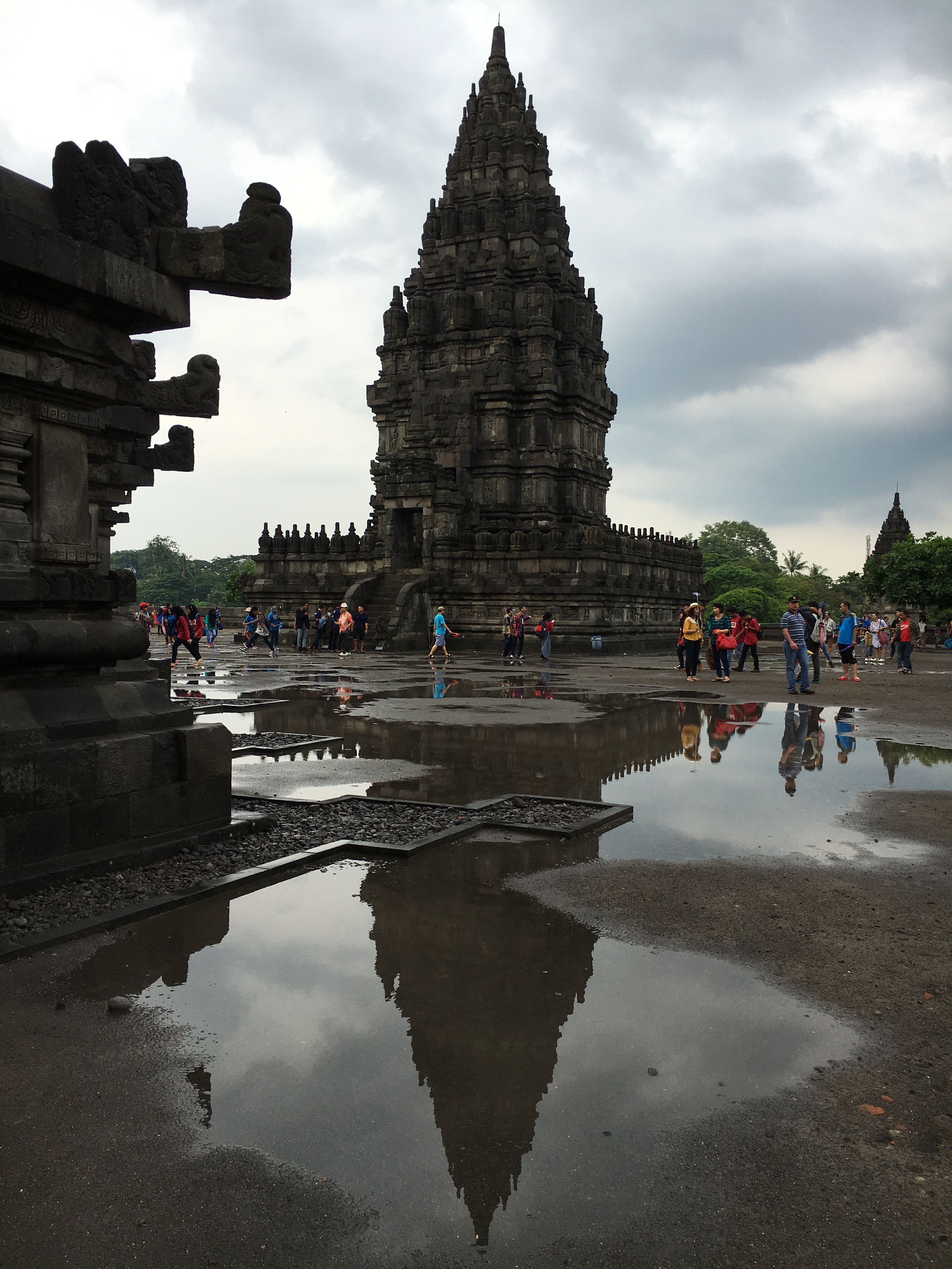 The next day I went to Prambanan, a Hindu temple that was also built in the 9th century and much closer to the city center. This is the largest Hindu temple in Indonesia and one of the biggest in Southeast Asia. As a direct consequence of how little planning I am doing at this point, I had not even heard of Prambanan before I arrived in Jogja and I admit to feeling ashamed to that fact. It is an immense impressive complex of several temples each dedicated to different gods. An earthquake in 2006 significantly damaged several of the structures and even though some reconstruction work has been ongoing, the evidence is still apparent throughout the compound.