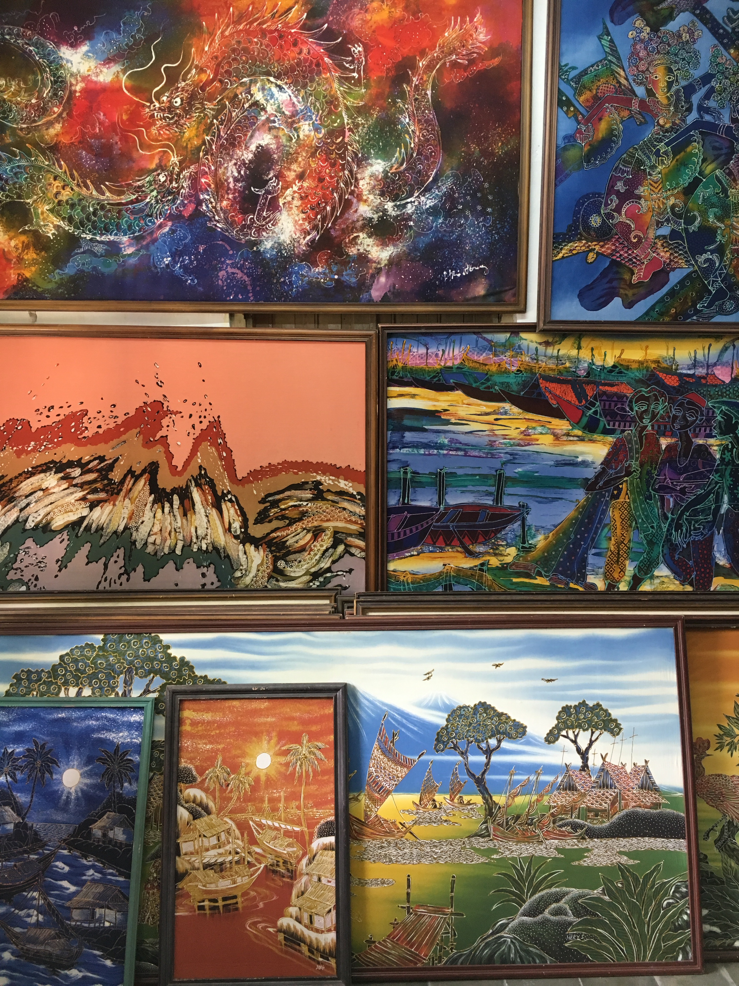 My last day I decided to explore the city. As I was walking along the main avenue, I saw a man walking next to me at the same pace. I slowed down. He slowed down. I sped up. He sped up. Even though it sounds creepy, it didn’t feel creepy. It just felt annoying. I knew he was going to talk to me and I was more interested in walking alone and not being bothered. Finally, we both were stuck at a traffic light and before I could make the split decision to cross the road on the other side, he made his move and struck up a conversation. I am always weary of this approach. I tend to assume that they are trying to distract so their accomplice can pickpocket me or they want to sell me something or they try to trick me into revealing personal information. My initial response was definitely standoffish and I’m still not sure what made me soften. He was perhaps in his 60s and was accompanied by his son. When he told me he was an English teacher, the whole interaction seemed harmless. As it turned out, they were walking the same direction I was so over the next couple of blocks, we continued chatting and he gave me a couple of tips for things to see in the city. I had become at ease in their presence so when he turned to walk down a quiet alley and beckoned me to follow because he wanted to show me something, I took pause trying to use my good sense to decide if this was a bad idea. I scanned the street and there were a few other people, including women, loitering outside. With women around, I went with my gut and followed him. We rounded a corner and he proudly pointed out a shop where they make and sell batik, a technique of wax-resistant dyeing applied to a canvas or cloth. He added that I should never buy batik on the street (where it is prevalently sold) because it’s always more expensive than this place. I couldn’t tell him that I had no intention of buying batik so I went in the shop and looked around anyway. There were plenty of beautiful prints and I spent an acceptable amount of time looking so as not to be rude.