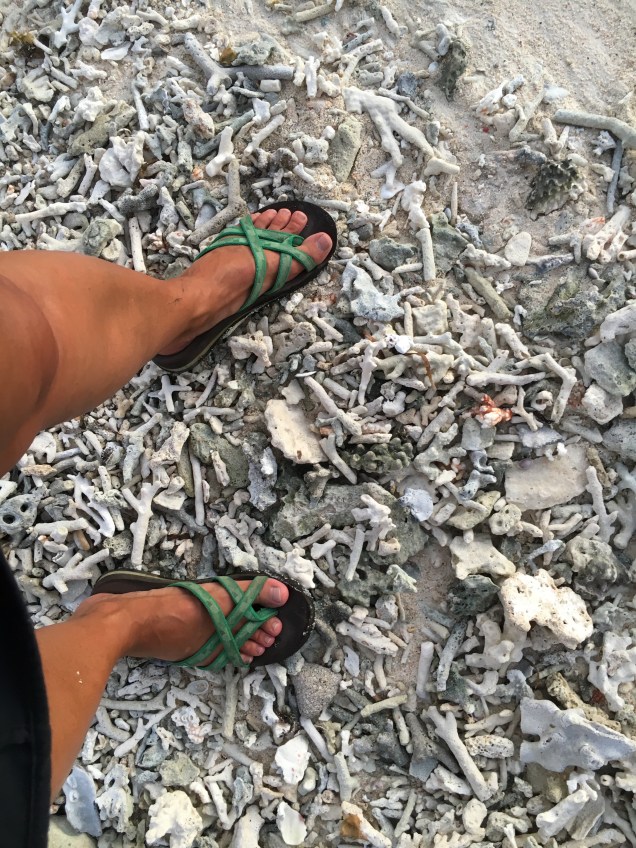 It’s still possible to find a wide sandy beach, although it may be covered in plastic waste (in one hour during my morning swim, I collected 5 plastic bags, a yogurt container, 1 plastic bottle, a handful of plastic lids, a full package of straws, a child’s toy, and more unidentifiable pieces. It’s still possible to see sea turtles swimming in the depths off shore (which was a highlight for me), but the corals are bleached, dying, or dead. The plentitude of boats make swimming and snorkeling dangerous sports when the boats plow right through the middle of a group of submerged snorkelers. The boatmen toss their big rusty anchors into the sea, even when there are buoys available to tie up, without any concern for whether coral might be underneath.