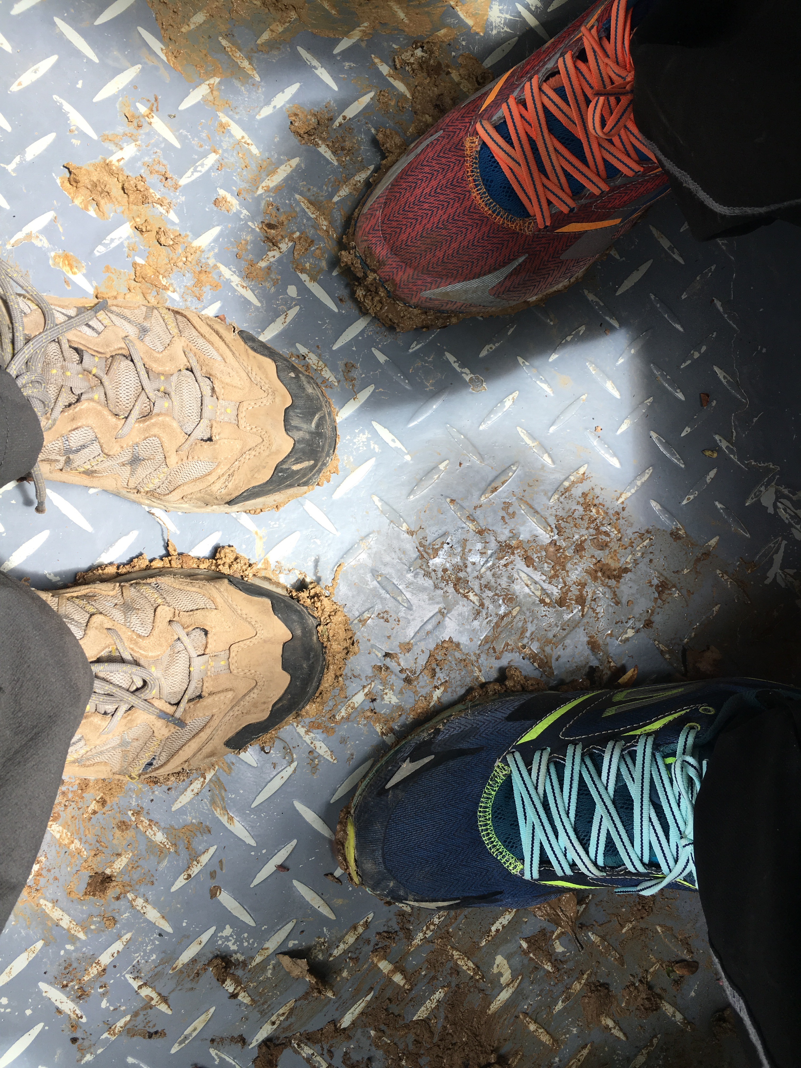 The bathroom hut was shared for men and women and included 4 western-style toilets (I make the distinction because non-western toilets are usually the squat variety) with no flush. River water was filtered to large barrels with spigots that you could use to fill buckets that were available for flushing and showering. The shower was just a mat in the open next to the buckets.