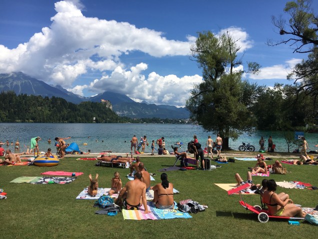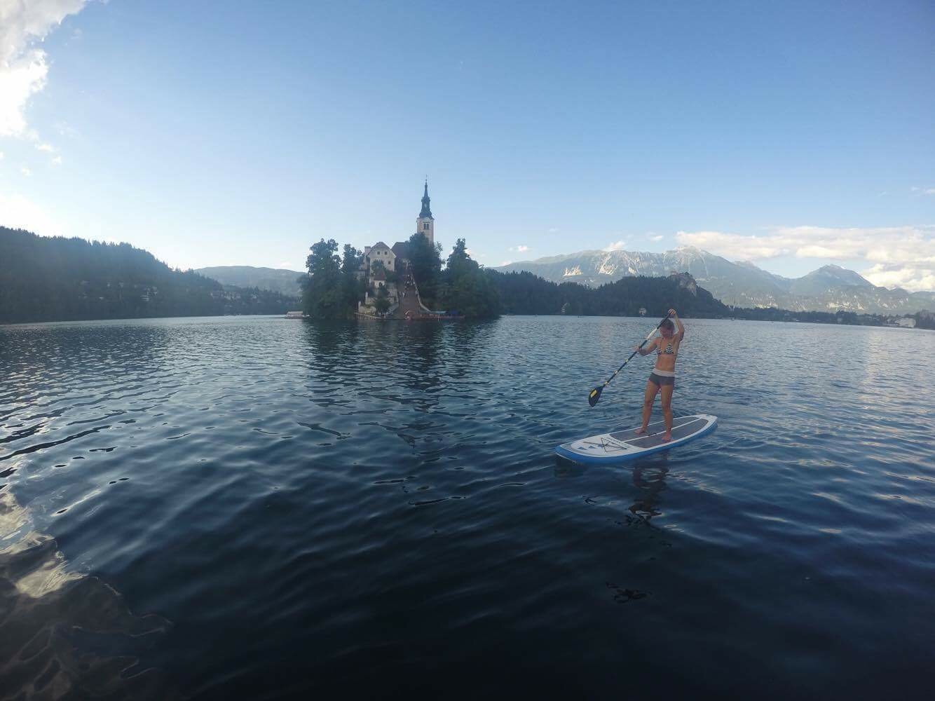 Neither Martyn or I had ever tried paddle boarding and after seeing Lake Bled, I can’t think of a better place to try it. The water is calm. There are no motorized boats or jet skis to watch out for. And in case you fall in, the water is clean unlike some city river paddle boarding I’ve seen. We rented for only an hour and used our new transportation to visit each side of the lake, circling the small island in the middle for a closer look and racing back again. I found myself wishing I would fall in because the water looked so inviting. Both of us remained upright, but as soon as we handed back our paddles and boards, I dove right off the pier. I couldn’t bear to stay on dry land. Do we really have to leave this place?