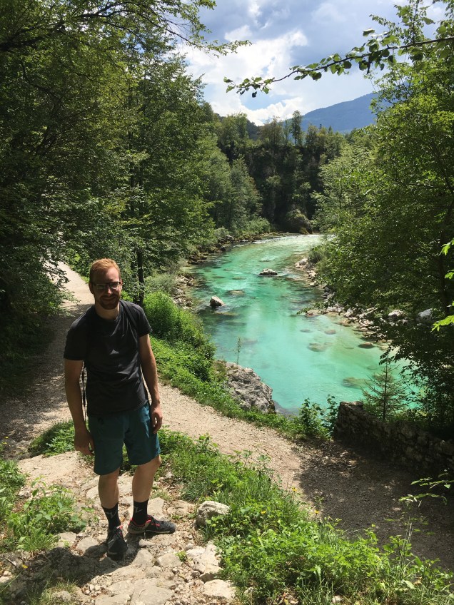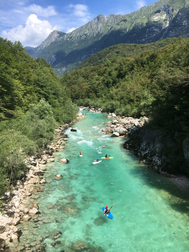 The Soca Valley, with its aquamarine river and location right at the gateway to the Alps, stands out as one of the most beautiful places I’ve ever seen. Martyn and I checked in to a one room apartment in the town of Kobarid. Kobarid is just a speck on the map with a sleepy quality that makes you want to sit and sip wine for hours except that there is so much to DO here. Chock full of adventure sports and pleasant trekking, the Soca Valley is nature’s gem.