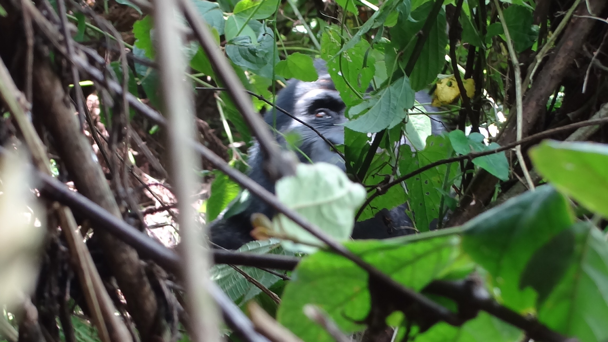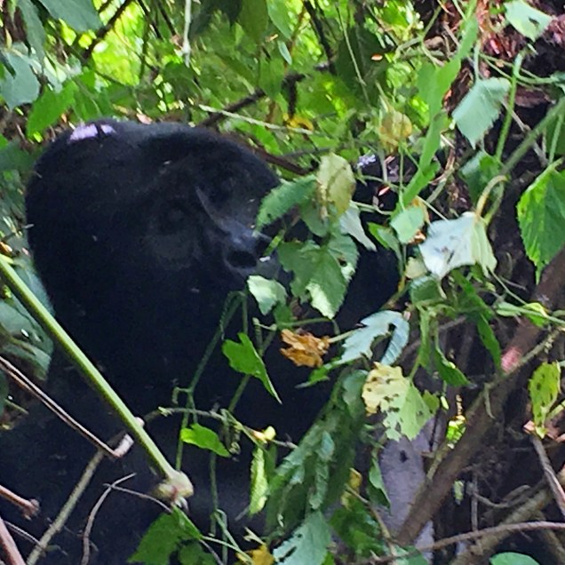 It’s hard to say now what I expected of my gorilla encounter. I knew others who had successfully completed this trek in the past and the experience had them raving about it for months, if not years, afterward. They had close-up and crystal clear photos of playful gorilla family members who stayed relatively in one spot, undeterred by the human onlookers. Using a machete, our lead guide pushed his way through the forest floor to get us within range and before we were able to catch even a glimpse of our first gorilla, they were on the move up the mountain. We followed. For the next two hours, we followed up and down the impenetrable mountain ground cover, through aggressive thorn bushes and muddy cliffs, tripping on exposed tree roots and crawling over mossy and slippery boulders, molested by fire ants and mosquitoes. It would take a gorilla 10 seconds to cover the same amount of distance it would take us to cover in 10 minutes. They didn’t seem afraid of us, yet they kept moving away. We were granted two hours instead of one because we never were close enough to get a proper view. There were 8 of us, plus 4 guides and scouts, and the terrain was such that not everyone could see at the same time.