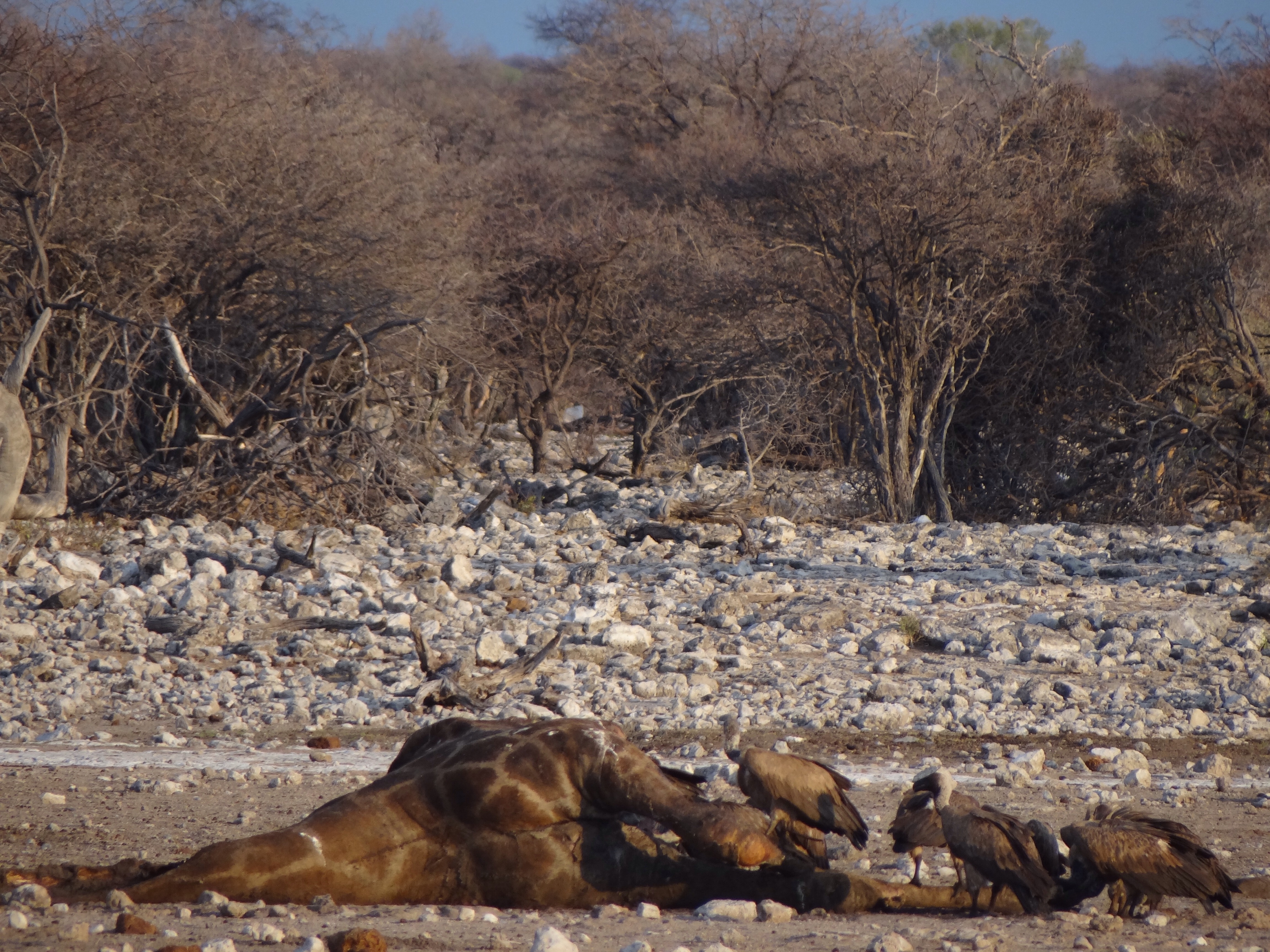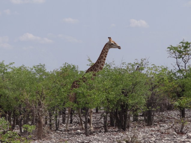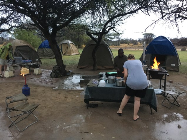 The day we were scheduled to depart from Etosha the rains came and not just a little bit. A torrential downpour submerged our meager campsite. We ate our toast and eggs with our heads bowed over as protection from the pelting water. Unfortunately, the rain makes for a sad safari. Just like us, the animals choose to stay hidden away under bushes or stony outcroppings making it all but impossible to find them. But remembering the giraffe from the previous day, I was glad that undoubtedly the rain would sprout new life and begin to turn the barren landscape green once again.
