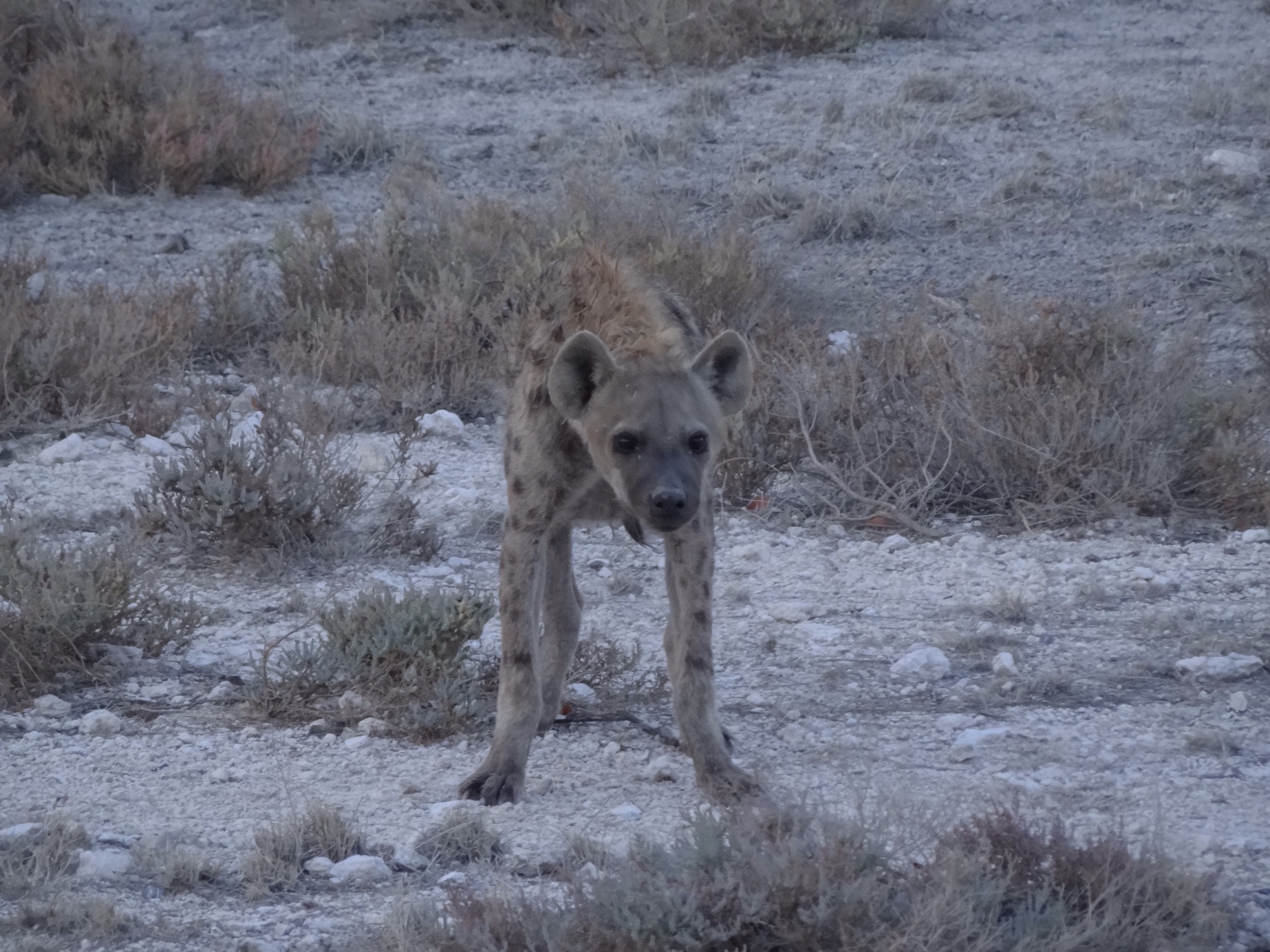 I had big plans for Namibia, armed with a work visa, I would be volunteering at a wildlife sanctuary for 4 weeks, but first I had a few days to kill as I got used to my new environment. Not full up on safaris yet, I signed on to a three day/two night camping excursion to Etosha National Park in the far north of Namibia. Just coming off my East African overland journey with such fun and enjoyable companions, I felt a bit bland toward my new group. We were 14 in a van built for 15 passengers, leaving little room to stretch our legs. There was a Chinese couple and a German guy who spoke no English, a German couple and two German friends who spoke English but chose not to, and a British couple where the husband was friendly but the wife regarded me icily as if she was threatened by me speaking to her overweight aging husband. The rest were a British guy, a Dutch guy, another German guy, and a South African girl who all eventually warmed up for a small talk conversation by the third day. After my little Acacia family, this group was a bunch of duds.