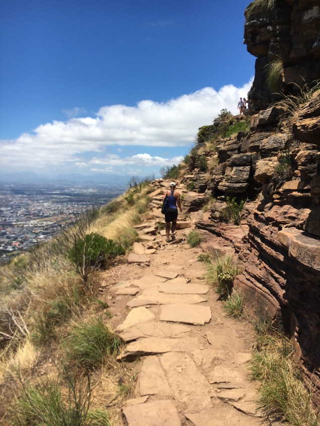 No surprise to me, but the next day I awoke with a raging headache. Steven only had two days left and he refused to let me forget that we were going to climb Lion’s Head, the peak that resembles a crouching lion. Best to climb Lion’s Head at dawn or dusk, I took my sweet time to finally get out the door so that Steven and I started walking from our hostel at 91 Loop at exactly mid-day. From the map, Lion’s Head seemed like a short jaunt, a couple of miles to the starting point. Our route took us through neighborhoods that were quiet and affluent until the map went rogue and sent us on a shortcut up a hill on a dirt path. Sticking to the road would require a switchback uphill of another mile or so. The shortcut is right there and would save us a ton of time…. I had an uneasy feeling. There were three utility workers about halfway up the hill – it should have seemed innocent enough, yet it felt like a trap and my gut was telling me we should hurry. Or perhaps it was because alarmists were constantly preaching the unsafe nature of unpopulated areas. Steven probably thought I was being irrational as we tiptoed past the idle workers who barely looked away from their ham sandwiches. In a country that is legendary for the number of violent muggings and assaults, I was so eager to get back to the main road that I stubbed my toe on a tree root, causing the sole to promptly fall off my shoe. Is this what is deemed as lousy timing? Not even to the base of Lion’s Head and my shoe was in tatters by the time we reached the road. At least those workers were distracted by bacon…..(cue eye roll now).