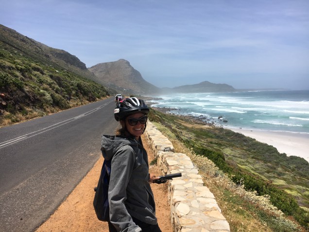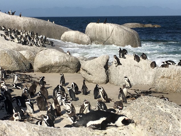 For Steven’s last day in South Africa, we did a full day excursion to the Cape of Good Hope and all the other stops on the way. These included a stop at Hout Bay to take a short boat ride to the sea lion colony, viewpoints and cycling along Chapman’s Peak Drive, the lighthouse at Cape Point, and the penguin colony at Boulders Beach. Steven really wanted to see baboons and we did get a brief glimpse, but mostly he had to settle for bold ostriches that weren’t the slightest bit bothered by our presence.