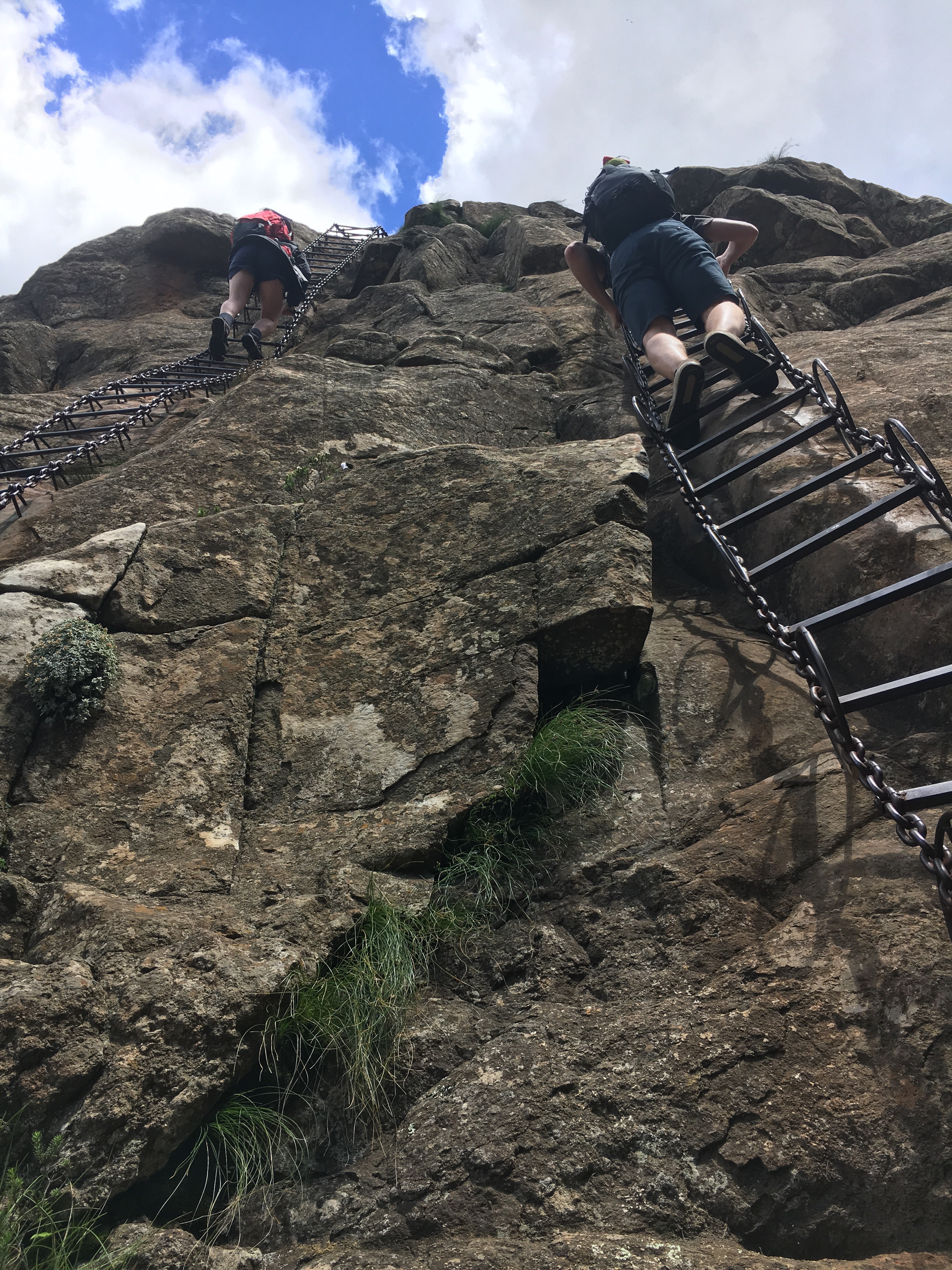For the return trip, we made a wide loop on the plateau to descend on two narrow chain ladders. For someone with an aversion to heights, they would be a little scary, but I thought it was fun. The wind started whipping up to add even more excitement to the climb; the chain ladders gently rocked from side to side while we waited for our turn. The rest of the way back to the Sentinel Parking Lot was easy except for a bit of water that had pooled on a rather treacherously steep part of the rock that we had to leap over. All in, this was a highly-sought after trek and I felt lucky that I was able to complete it.