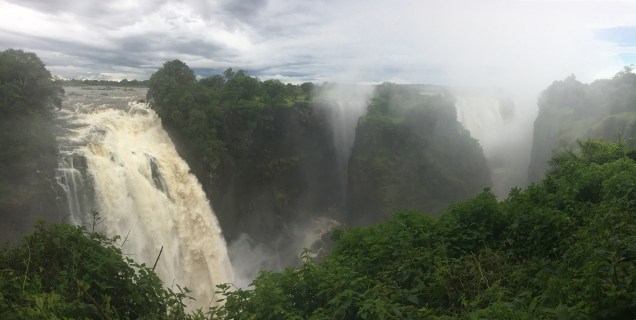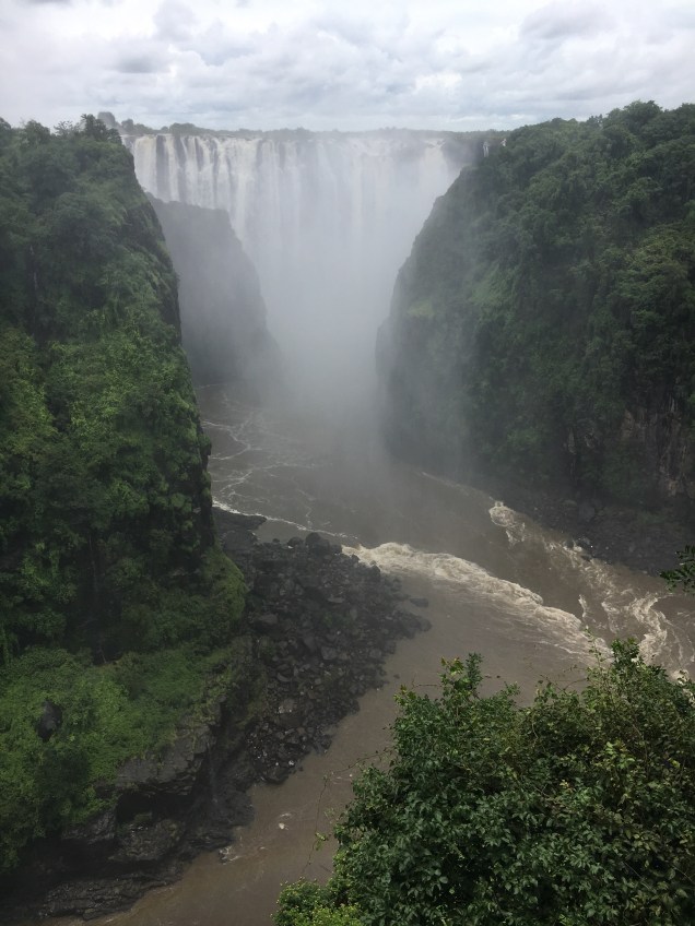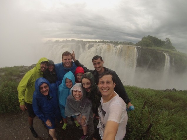 Most of our group stayed together, taking photos, and posing for selfies. It became increasingly obvious that my flimsy plastic bag was no match for the torrents of this waterfall so I would quickly take out my phone, snap some pictures in a full panic, before tucking it back in the bag dripping wet. A few others that were better prepared with waterproof cameras saved the day. By the 16th viewpoint, looking back on the bridge that connects Zimbabwe to Zambia, Tomas noticed that both his phone and camera were toast. Victoria Falls had taken a couple of casualties, after all.