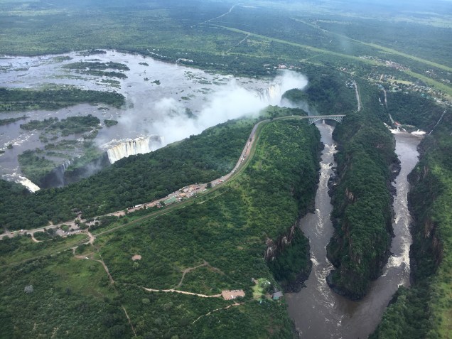 And we weren’t done yet. Back across the border in Zimbabwe, Tomas and I were booked to take a 12 minute helicopter ride and get an aerial view. We had originally been scheduled for an early morning helicopter and even gone so far as the safety briefing and takeoff before turning around 3 minutes into the flight, citing the reason as unsafe weather conditions. We were rescheduled for an afternoon flight and I must say that the weather conditions seemed to be exactly the same this time when we took off with 4 additional passengers and began circling the waterfall. You would think that viewing Victoria Falls from so many different angles we had seen enough, but nothing really compares to that bird’s eye perspective. It’s difficult to fathom the size until you see it from air.