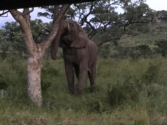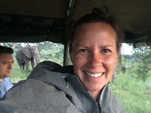 A pride of lions had been hanging out in the area of our sundowner for the previous few days so we went straight there to see what might be found. We were joined by several more jeeps that all had the same plan in mind. Radios were on fire as guides checked in with other guides as to the whereabouts of the lions, but no one had seen them in more than 24 hours. We drove up to a rocky lookout where our guide set up a small table of bubbly and the option for a shot of amarula, a cream liqueur made from the marula tree. Because elephants love to eat the fruit of the marula tree, this liqueur is often associated with elephants and sales go toward conservation. With an alcohol content of 17%, I could only stand a sip, but it warmed my throat with a sweet caramel aftertaste.
