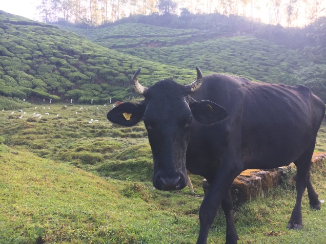 After a short(ish) bus trip from Mysore to Bangalore, Mel and I booked a double bed on an AC sleeper bus while Jill booked a single on a non AC bus. Both were scheduled to depart in the evening and arrive around the same time in the hill country of Munnar. In spite of the winding and bumpy mountain roads, I slept relatively well. Morning condensation beaded on the windows but I could still make out the rolling green hills of the Kerala tea plantations. Cows, dogs, and pedestrians shuffled through the dust clouds thrown up by buses and auto rickshaws.