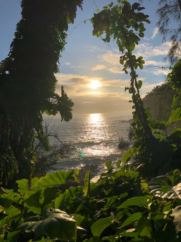 From the easy rainforest walk at Akaka Falls to the challenging and spidery (meaning a lot of spiders) jungle trails in Hamakua Forest, from the green sands beach at Papakolea to black sands beach at Punalu’u to white sands beach at Hapuna, from the laidback cafes of Kona to the hippie vibes in Hilo, tourists were fully enveloped in the holiday atmosphere while I clenched my teeth and made lists of things I still needed to do. Don’t get me wrong. I still enjoyed sunsets and sunrises and some incredible views from north to south with a cocktail in hand all while fretting that I was woefully under-prepared for a potentially dangerous adventure.