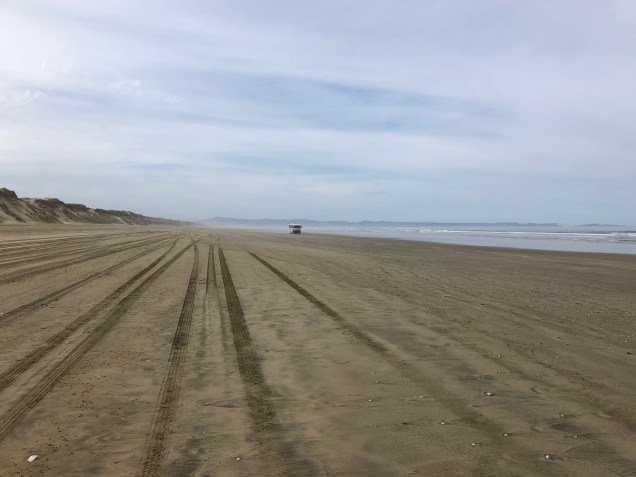 Shade was nearly impossible to come by beyond 10am when the sun overtook the dunes to my left. I walked and walked, occasionally turning around to see how far I had come just to be disappointed by how little progress I seemed to make. I stared at my feet. I listened to podcasts. I sang Taylor Swift at the top of my lungs. I counted my steps. I counted seashells. I counted waves. I yelled at the beach. I yelled at my aching feet. From time to time, a tourist bus or a random car would drive toward me down the beach, Maximum Overdrive style, with passengers staring at me, slack-jawed, disbelieving that someone would be out here on foot.