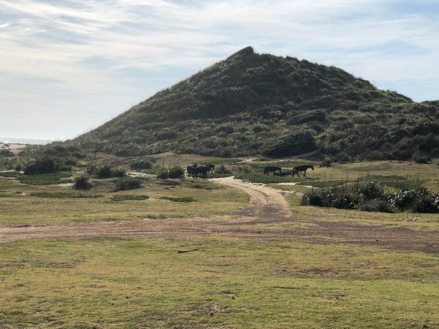 Everything hurt by the time I reached Bluff Camp and I was nearly the last to arrive. I hadn’t seen anyone except Paris and Alastair all day. It felt like I must be the only one suffering. Today I met Matt and Sasha from the UK, Hunter from near Queenstown, and Hannah and Ben from Vermont. I was too shattered to even walk out for sunset, but sharing stories about sore limbs and mind-numbing boredom on the beach made me feel a sense of camaraderie, like I’m not really in this alone. Wild horses regarded us with some curiosity, circling the camp. Knowing they were nearby made it a magical night even if my eyes were shut tight as soon as my head hit the pillow.