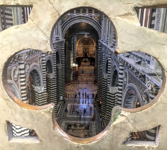 A quick side trip to the Tuscan city of Siena sent me into the scenic countryside and away from my travel to-do list in Florence. The cobbled streets connected store fronts selling local wine and cheese, many of which boasted tastings of Classico and Sangiovese. It was Friday and the large shell-shaped amphitheater, Piazza del Campo, was preparing for a concert. The resident youth crowd had secured their spots by sunbathing on the bricks using backpacks as pillows. My favorite view was while negotiating the ceiling rafters of the cathedral and catching a glance from above down to the imposing columns below. If you’ve seen too many cathedrals, one way to renew your interest is seeking out a unique perspective!