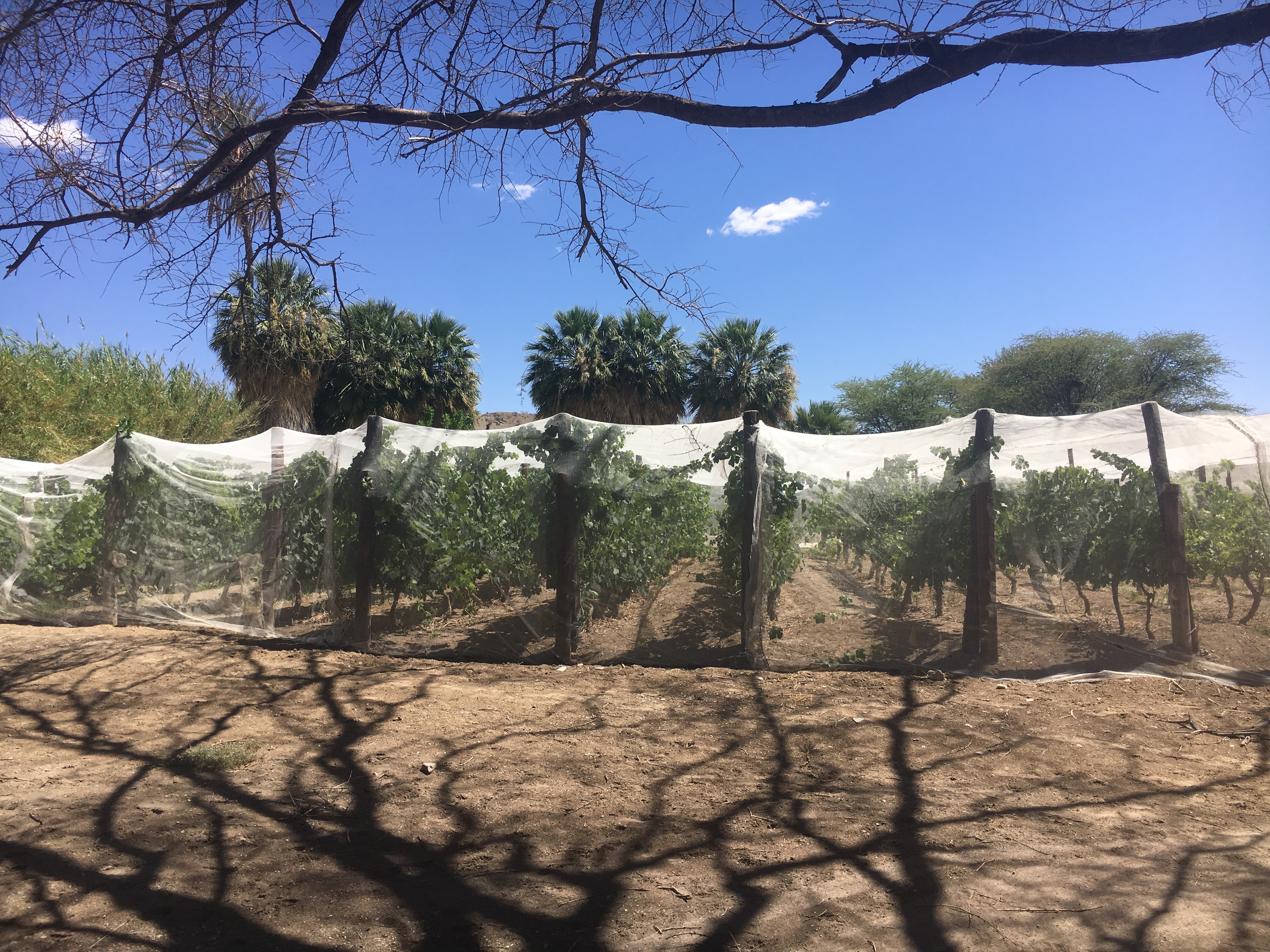 Four hours from N/a’an ku se over bumpy and dusty roads, eight volunteers headed south to Neuras Wine and Wildlife Estate. An unlikely combination, Neuras has the distinction of producing the driest wine in the world deep in the Namib Desert, but after the van Vuurens’ bought the estate in 2012, it also became a research center in conjunction with N/a’an ku se’s wildlife. I was joined by Sanna from Finland, Oda and Andrea from Norway, Tia and Noor from Denmark, Rachel from Australia, and Seraina from Switzerland, rounded out by Miranda from the Netherlands and Chloe from the UK who had already been working at Neuras for a couple of weeks before us newbies arrived. We were all women with a median age of 19, yet a powerful bunch we were. Jeanette was our fearless leader who not only runs a successful research program, but also was our acting tour guide to drive us all over the desert in search of natural treasures and beautiful scenery.