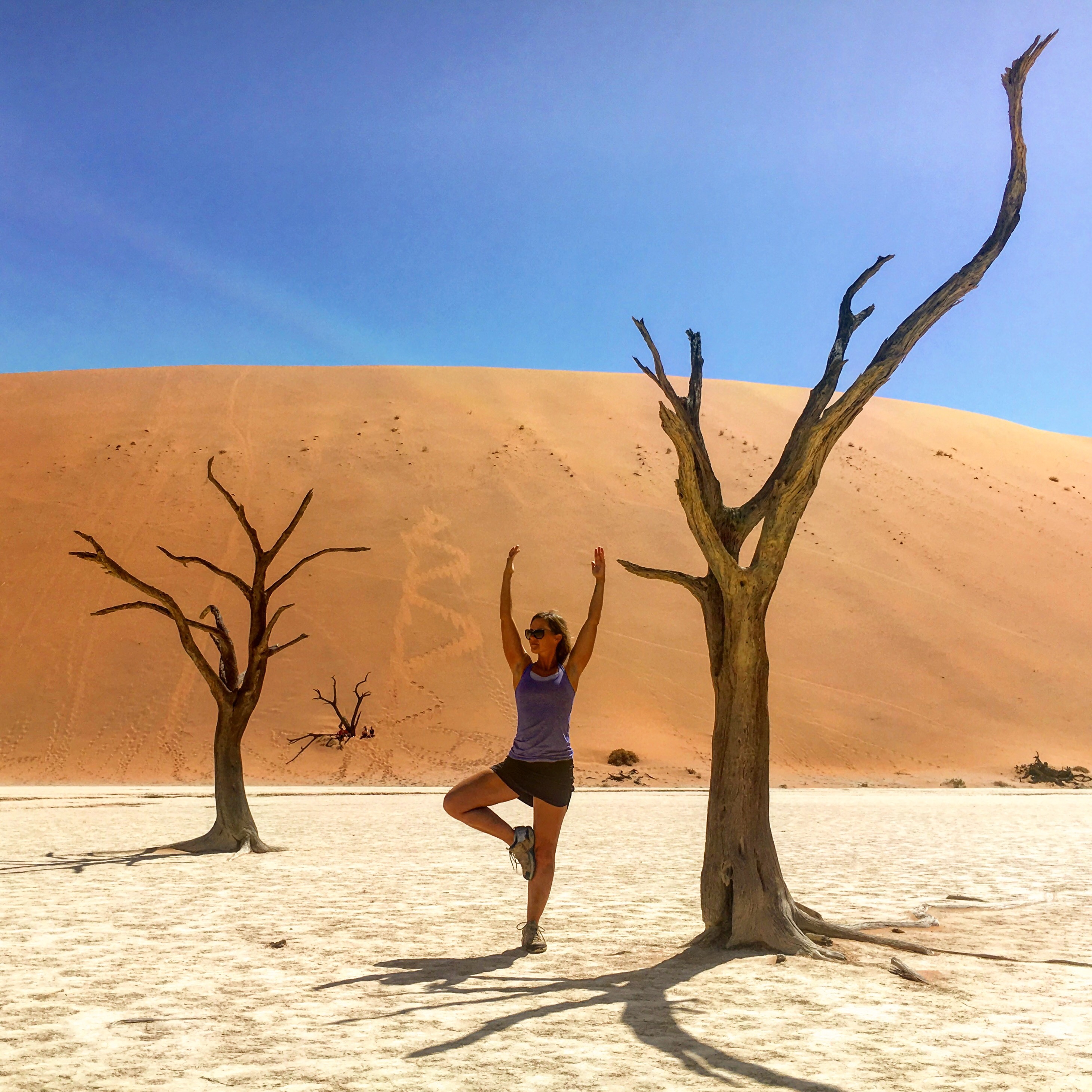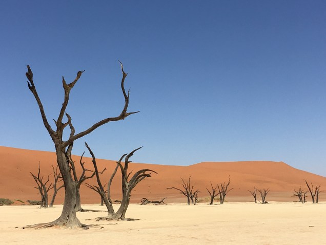The bottom of the dune deposited us right in front of Deadvlei, the valley where trees have been dead from 500-900 years already, yet they still proudly stand as mere shells in the dry desert air. It is an eerie landscape, especially when there aren’t any other camera-toting tourists in sight. It’s one of those vast places that makes you question time and space and your own significance in the universe.